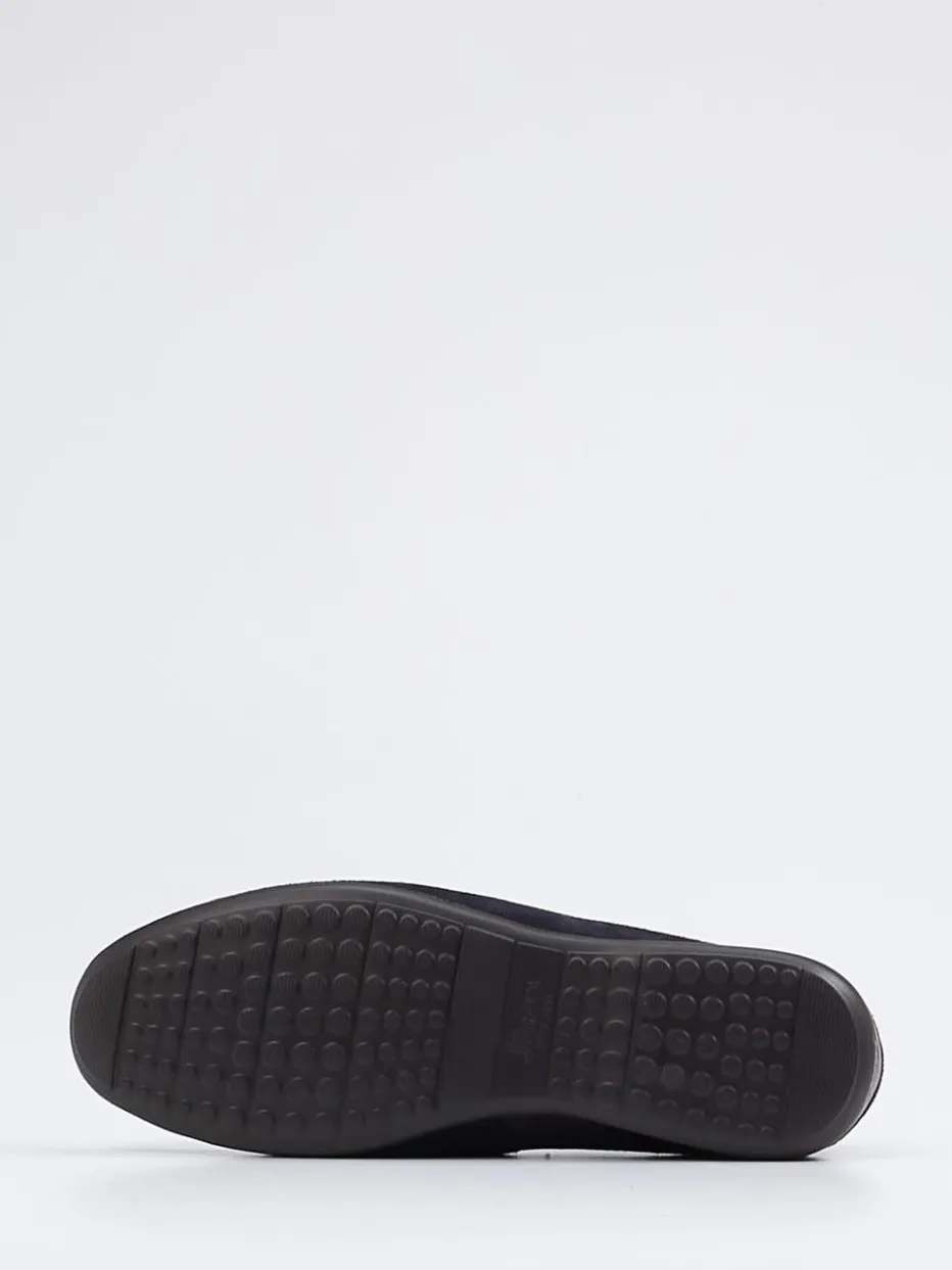 Stilsicher durch Alltag und Büro.Sioux präsentiert einen klassischen Herren-Loafer aus samtig angeschliffenem Veloursleder. Für entspannte Büro-Tage oder gepflegte Freizeitmomente ist dieser dunkelblaue Slipper mit kontrastierender Mokassinnaht wie gemacht. Das weiche Obermaterial aus echtem Veloursleder wirkt in Kombination mit dem angenehmen Textilfutter besonders komfortabel. Dezente Logoprägung, seitliche Ziernähte und die profilierte Gummilaufsohle unterstreichen den stilvoll-reduzierten Look. Inspiriert von Quiet Luxury und Casualwear passt er hervorragend zu Chinos und Leder-Accessoires. Bequem mit klassischer Note – ein Schuh für stilbewusste Individualisten.