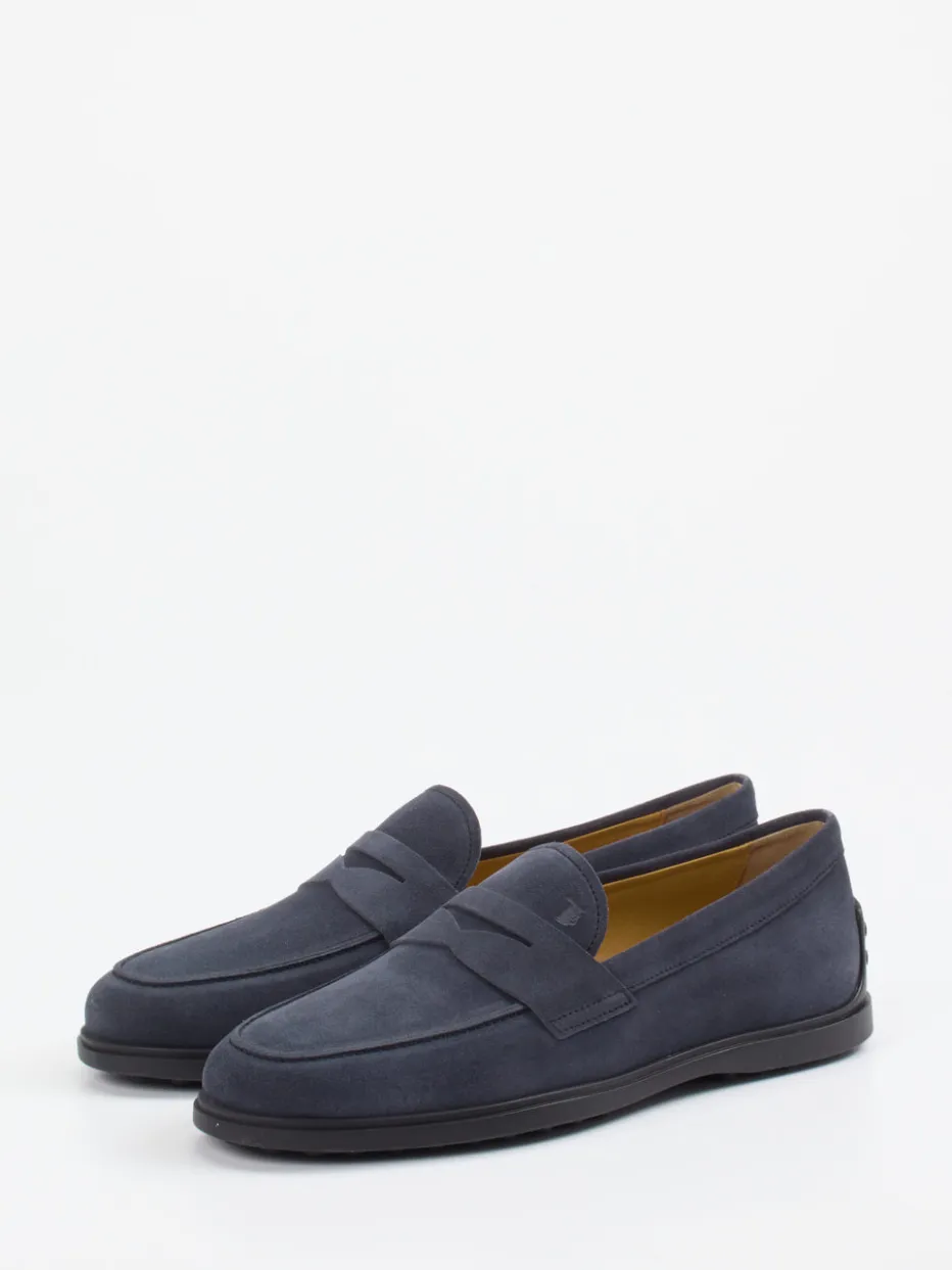 Italienische Eleganz für jeden Tag.Tod’s präsentiert mit diesem Herren-Loafer ein stilvolles Modell für Business und Freizeit. Wenn zeitlose Ästhetik und Komfort im Alltag gefragt sind, überzeugt dieser Schlupfschuh mit samtigem Veloursleder in Nachtblau und klassischem Penny-Loafer-Design. Dezente Ton-in-Ton-Nähte, ein geprägtes Spann-Logo sowie die charakteristische Gummisohle mit Noppenstruktur unterstreichen die hochwertige Verarbeitung. Der flache Schnitt verleiht dem Modell eine schlanke Silhouette, während das Kalblederfutter angenehmen Tragekomfort garantiert. Inspiriert vom „Quiet Luxury“-Trend passt der Schuh ideal zu Chinohose oder Soft-Tailoring-Looks. Ein moderner Klassiker mit typisch italienischem Understatement von Tod’s.