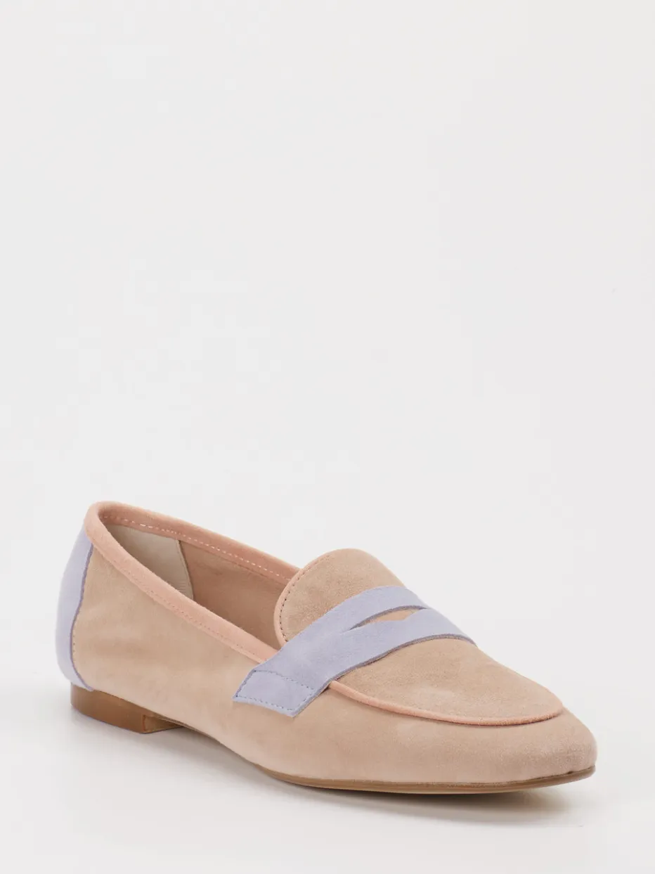 Dieser Damen-Loafer verbindet klassische Formensprache mit einem sanften, modernen Farbspiel. Hochwertiges Veloursleder und dezente Details betonen seine stilvolle Zurückhaltung.