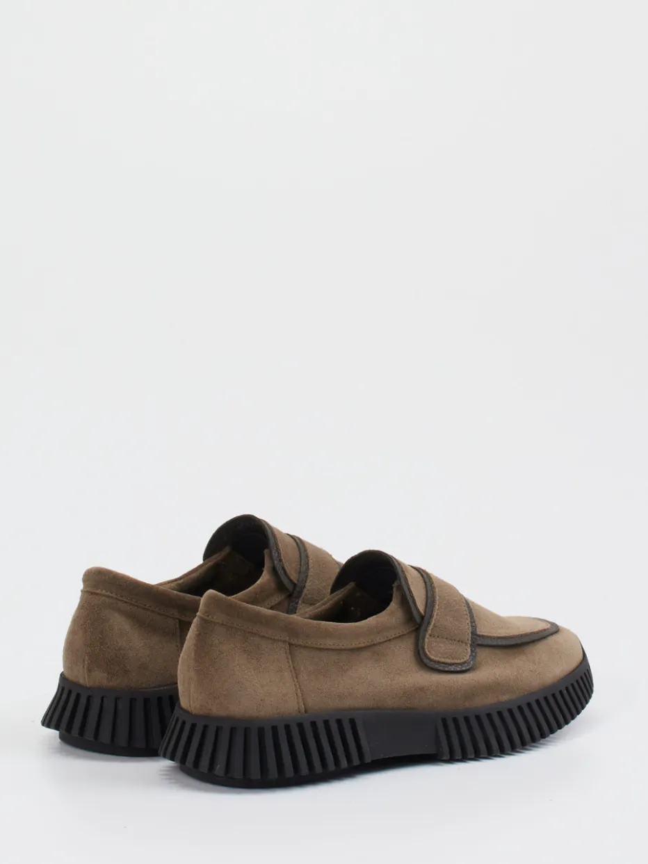 Der Damen-Loafer von Arche vereint dezente Eleganz mit spürbarem Komfort. Gefertigt aus feinem Kalbleder, samtig angeschliffen als edles Veloursleder, zeigt er sich in einem warmen Schlammbraun.