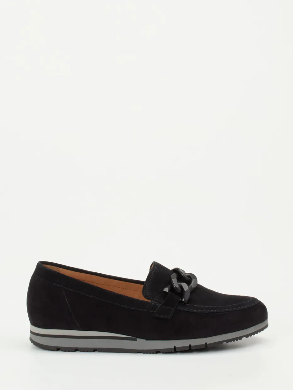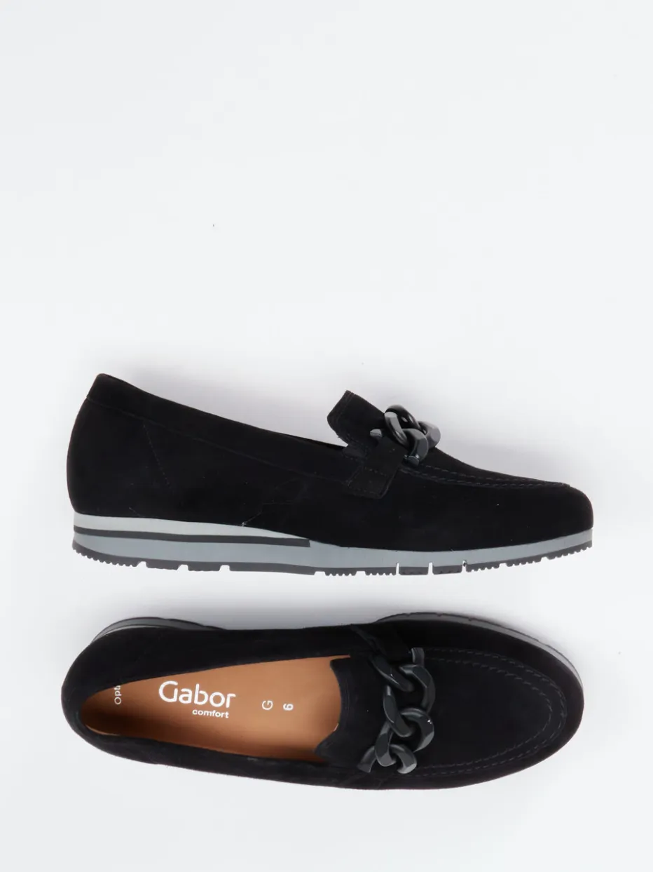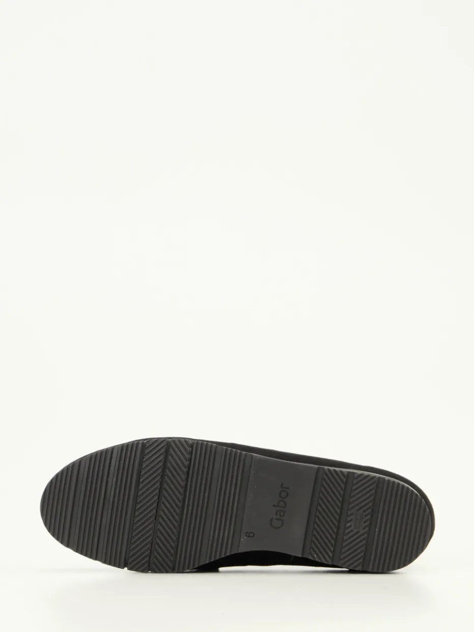 Gabor Comfort präsentiert einen Damen-Loafer aus hochwertigem Veloursleder in Schwarz.