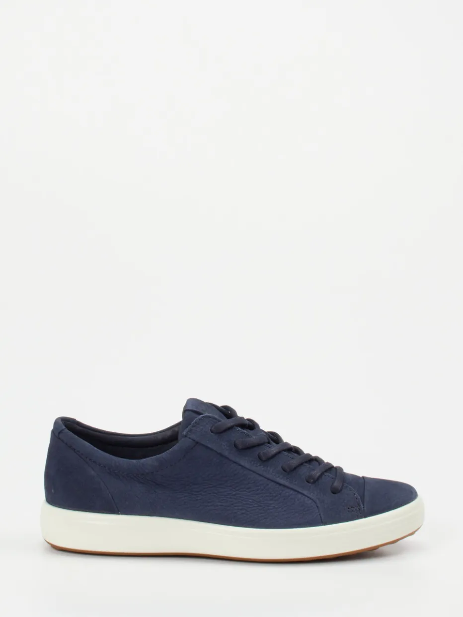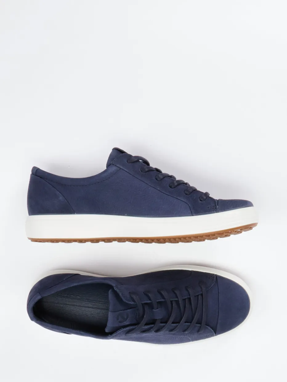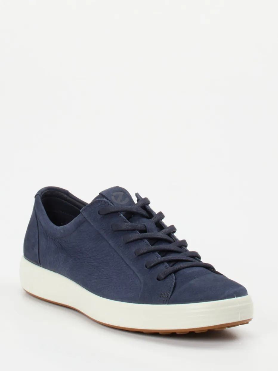 Ecco präsentiert einen Low-Top Sneaker für Herren, gefertigt aus dunkelblauem Kalbleder mit dezenter Prägung.