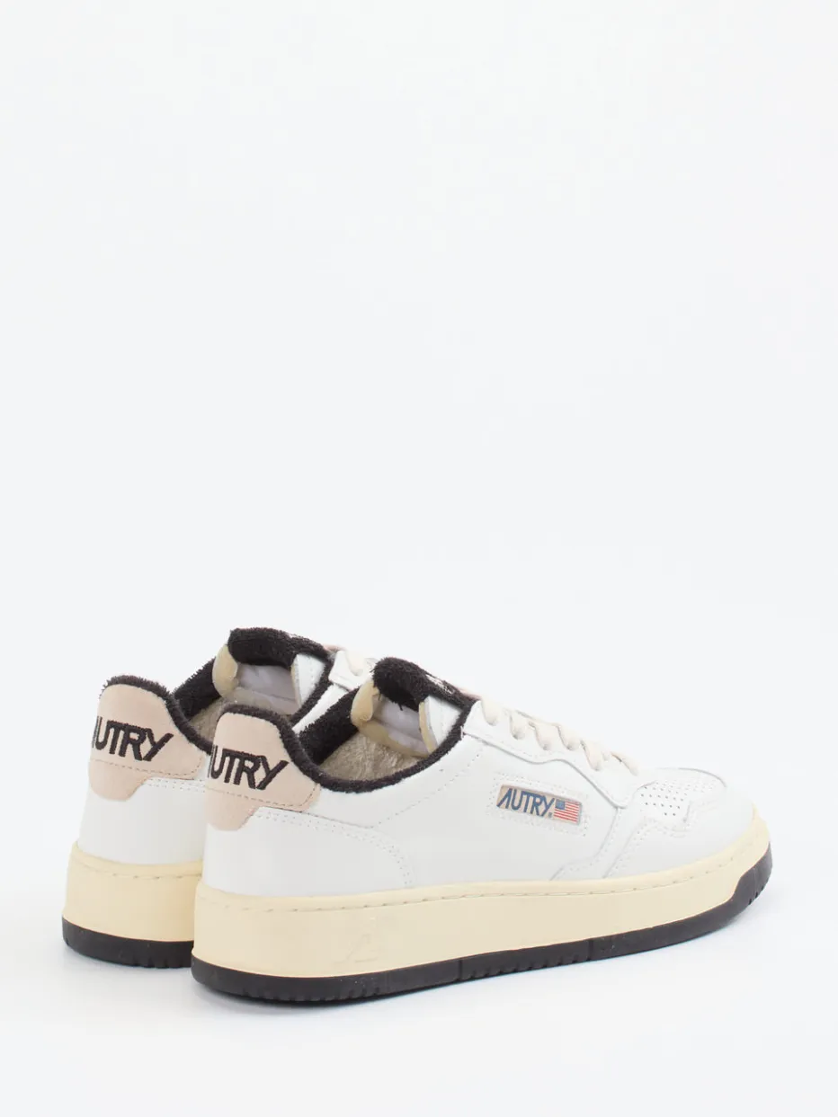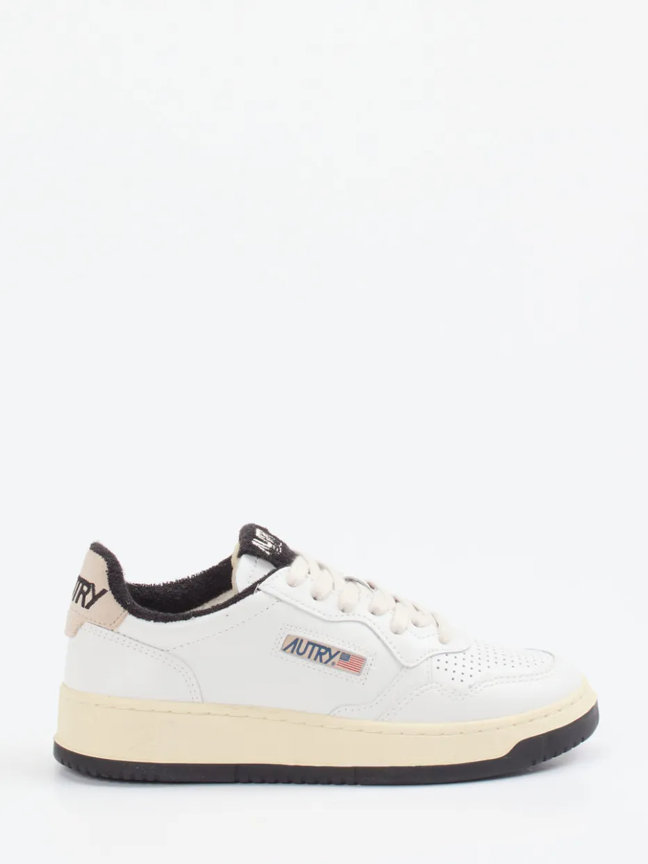 Autry präsentiert diesen klassischen Low-Top Sneaker für Damen. Ideal für entspannte Freizeitmomente, vereint das Modell hochwertiges Kalbleder mit einer matten Oberfläche und kontrastierenden Details in Schwarz und Beige. Die perforierte Zehenpartie und ein gepolsterter Polsterkragen mit Frottee-Innenfutter sorgen für Komfort mit 90s-Charakter. Mit Schnürung, flacher Silhouette und Gummisohle ausgestattet, passt er perfekt zu Streetwear und Retro-inspirierten Outfits. Die markante Logo-Stickerei unterstreicht den sportlich-authentischen Look. Ein Sneaker, der Streetstyle, Alltag und Vintage-Spirit mühelos vereint.