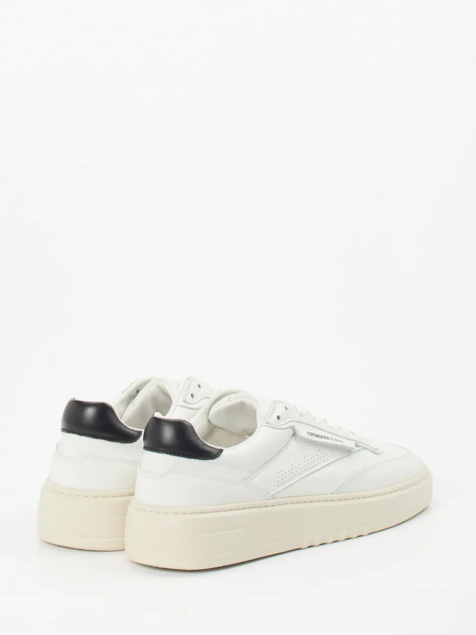 Stilvoller Komfort für jeden Tag.Copenhagen präsentiert mit diesem Low-Top Sneaker ein cleanes Modell für Freizeit und Alltag. Die waxbeschichtete Oberfläche aus weißem Kalbleder schützt effektiv gegen Feuchtigkeit und verleiht eine glatte, hochwertige Haptik. Dezente Perforierungen an der Seite und eine markante schwarze Fersenkappe setzen subtile Akzente im minimalistischen Offwhite-Design. Der klassische Schnürverschluss sorgt zusammen mit der gepolsterten Einlegesohle und dem absorbierenden Innenfutter aus Frottee für hohen Tragekomfort. Streetwear-inspiriert und im Trend des Quiet Luxury lässt sich der Sneaker ideal mit entspannten Stoffhosen oder monochromen Outfits kombinieren. Ein cleanes Copenhagen-Design für stilbewusste Urbanität.