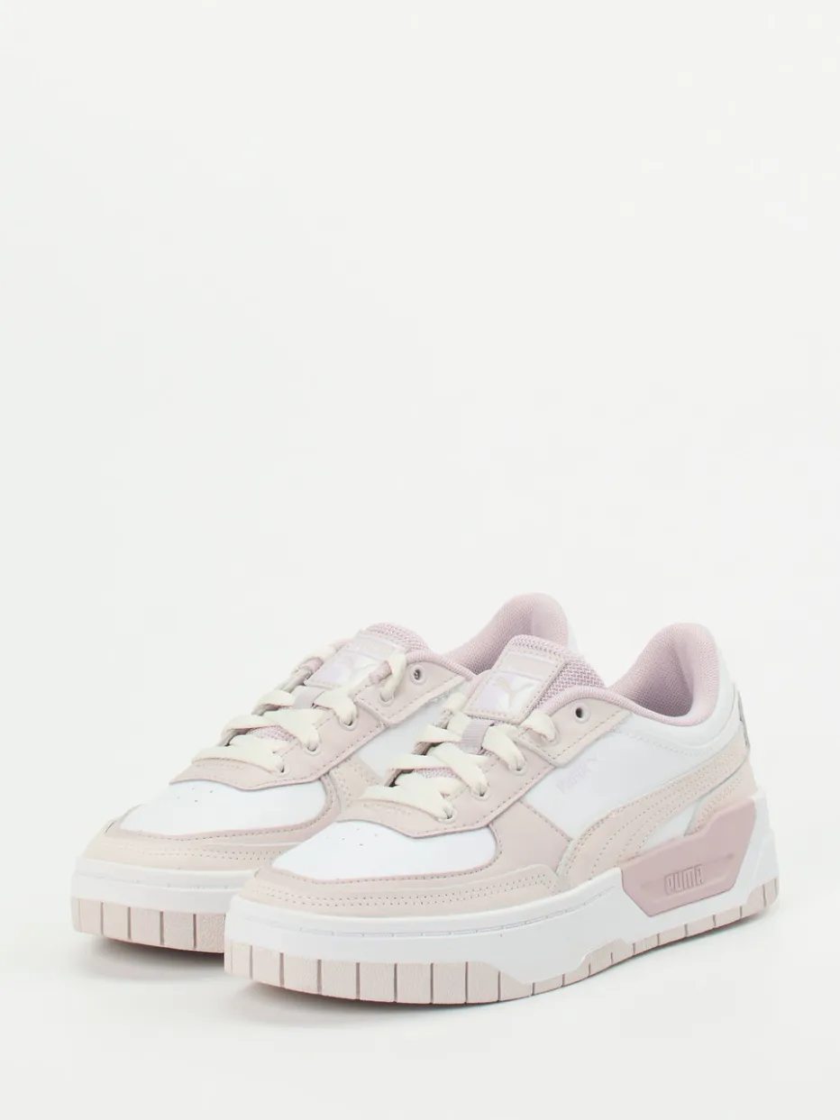 Pastell trifft Retro-Streetstyle.Die Marke Puma interpretiert mit diesem Low-Top Sneaker den aktuellen Sommertrend neu. Beim Stadtbummel oder auf Reisen – dieser Damen-Sneaker passt perfekt zur lässigen Alltagsgarderobe. Das weiße Leder wird durch taupe- und beigefarbene Akzente belebt, während mattes Mesh partiell für atmungsaktive Frische sorgt. Die chunky Silhouette mit markanter Gummisohle bietet angenehmen Tragekomfort, gepolsterter Einstieg und verstärkte Ferse unterstützen das Laufgefühl. Dezente Ton-in-Ton-Logos und Farbkontraste an der Ferse setzen stilvolle Akzente. Inspiriert vom Streetwear der 90er und dem Pastelltrend der Saison. Lässiger Komfort mit sportiver Designlinie – typisch Puma.