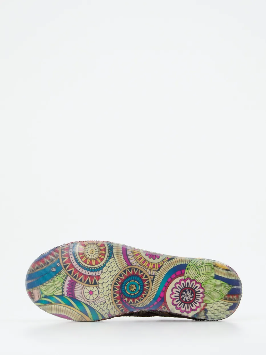 Glanz und Pattern im Spiel.Rise interpretiert die Damen-Sneaker-Kategorie neu. Ob Festival-Wiese oder Streetstyle-Spaziergang: Dieser Sneaker erfüllt das Bedürfnis nach Farbvielfalt und Detailfreude. Das Material kombiniert strukturiertes Textil mit rotem Glattleder sowie glänzenden Strasssteinen, während die gemusterte Gummisohle mit Mandala-Druck ein echtes Design-Statement setzt. Die klassische runde Silhouette wird durch eine gepolsterte Ferse und eine farbige Schnürung ergänzt. Die Boho-inspirierte Optik passt in trendorientierte Freizeit-Looks. Besonders harmonisch in Kombination mit einer einfarbigen Crossbody Bag. Markentypisches Highlight für ausdrucksstarken Stil mit Komfortfaktor.