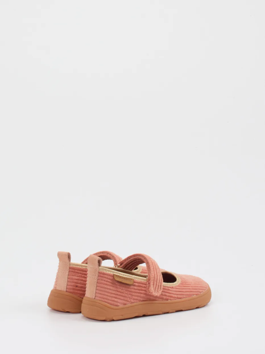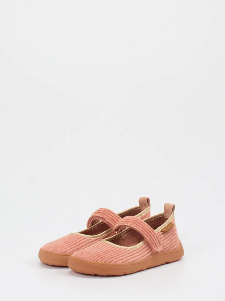 Skandinavischer Komfort für kleine Füße.Bisgaard zeigt mit diesem Mary-Jane-Kletthausschuh im Cord-Look, wie stilvolle Entspannung für Kinderfüße funktioniert. Die samtig gerippte Textiloberfläche in Koralle sorgt zusammen mit dem weichen Textilfutter für ein wohliges Tragegefühl. Die flache Silhouette, der praktische Klettverschluss sowie die Zuglasche hinten machen das An- und Ausziehen kinderleicht. Die flexible Gummisohle mit floraler Struktur fördert ein barfußnahes Laufgefühl und gibt sicheren Halt – perfekt für Alltag oder Zuhause. Goldfarbene Details und sichtbare Steppnähte unterstreichen den skandinavisch inspirierten Look. Ein funktionaler Lieblingsschuh im Soft-Colors-Trend mit liebevollen Akzenten – typisch Bisgaard.