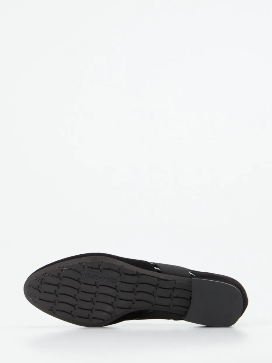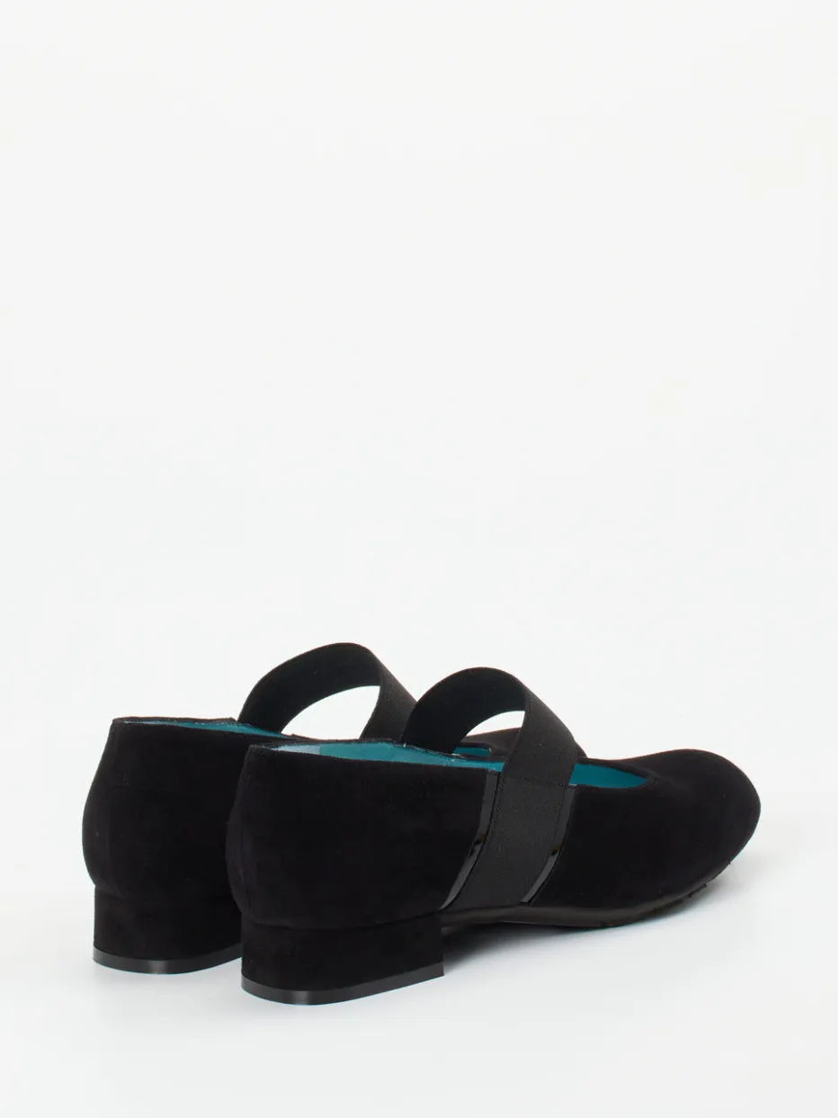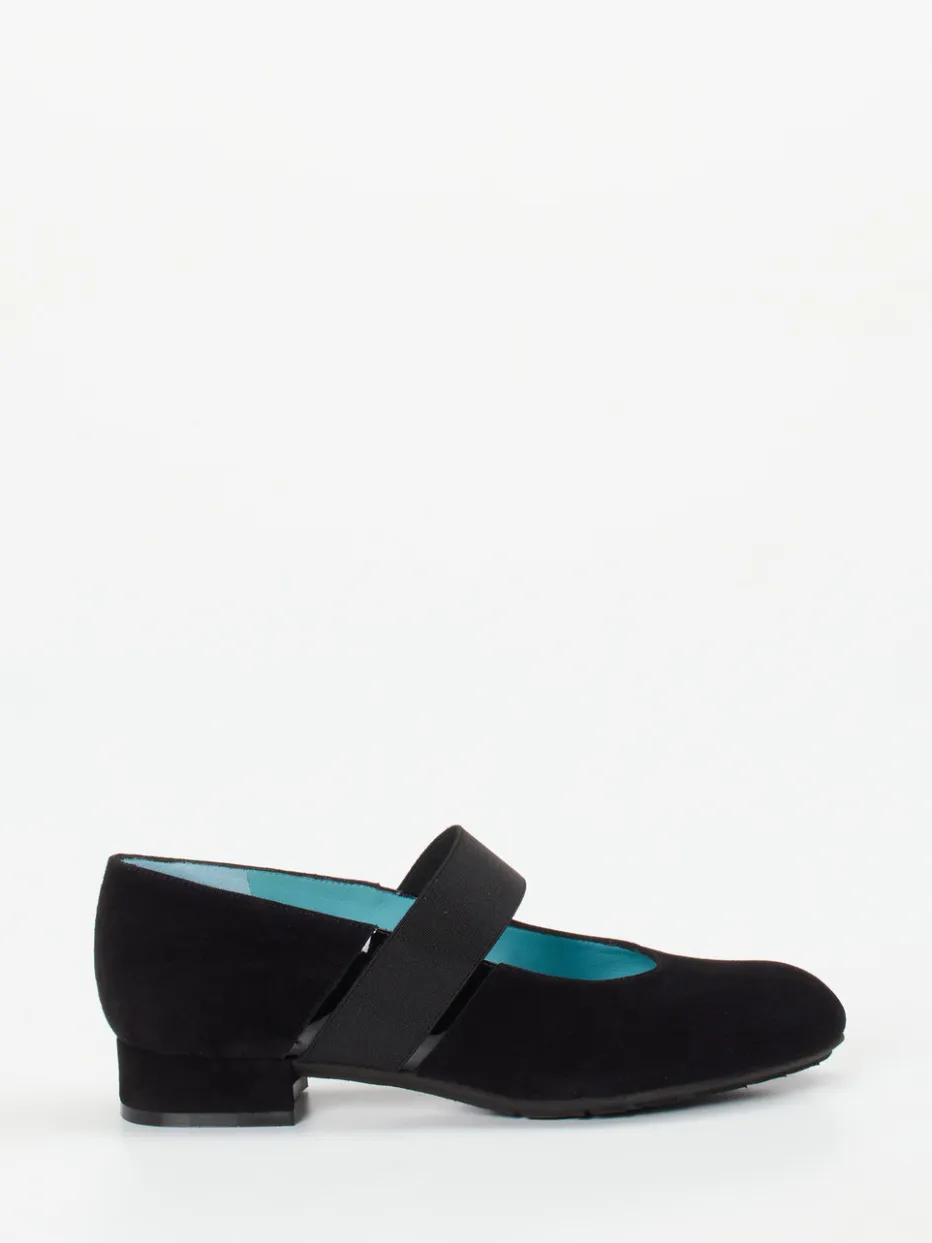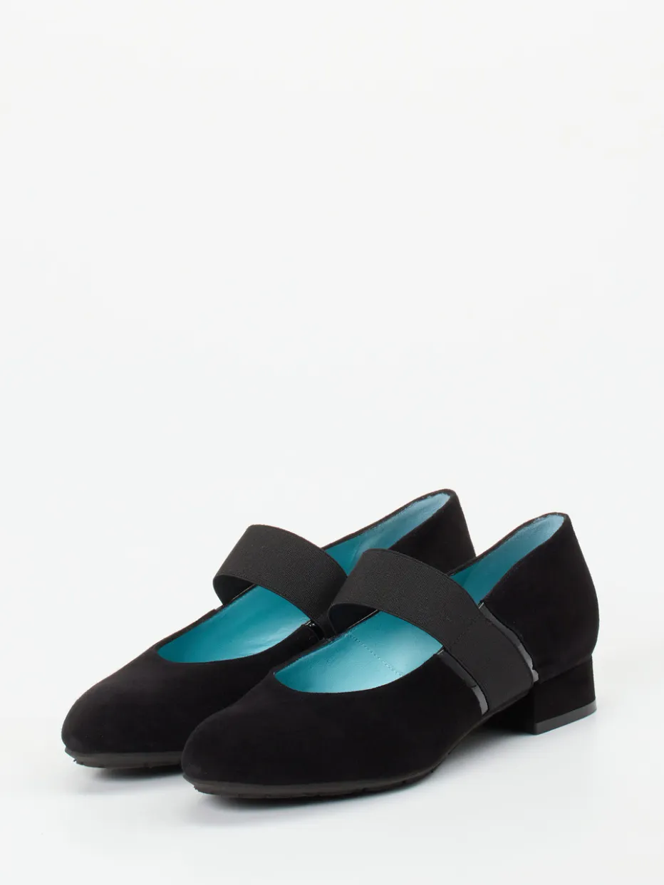 Zeitlose Linie mit modernem Akzent.Thierry Rabotin präsentiert stilvolle Mary Janes für Damen, gefertigt aus schwarzem Veloursleder. Perfekt für vielfältige Alltagssituationen – diese Spangenpumps verbinden eine klassische, rund geformte Silhouette mit einem elastischen Riemen für stabilen Sitz. Das samtig angeschliffene Veloursleder trifft auf einen Blockabsatz von 2,5 cm Höhe und eine rutschhemmende Gummisohle. Glänzende Lackakzente am Band verstärken den modischen Minimalismus. Innen verwöhnt weiches, himmelblaues Lammnappa. Retro trifft Komfort – ideal zu blickdichten Strumpfhosen oder monochromen Business-Looks. Eleganz und Laufkomfort, typisch Thierry Rabotin.