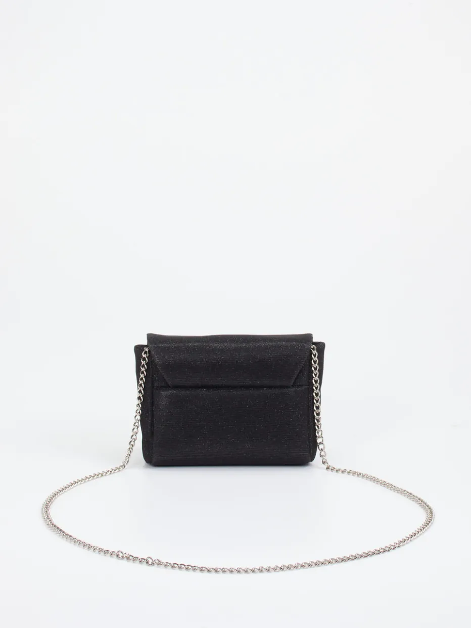 Glanzvoller Auftritt garantiert: Die Mini Bag vereint minimalistisches Design mit glitzerndem Textil und edler Metallkette – perfekt für formelle Anlässe und moderne Abendlooks.