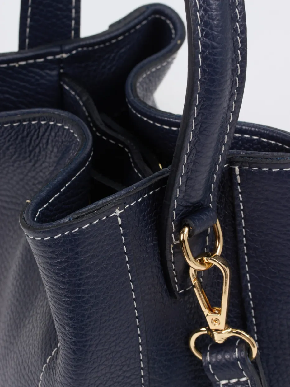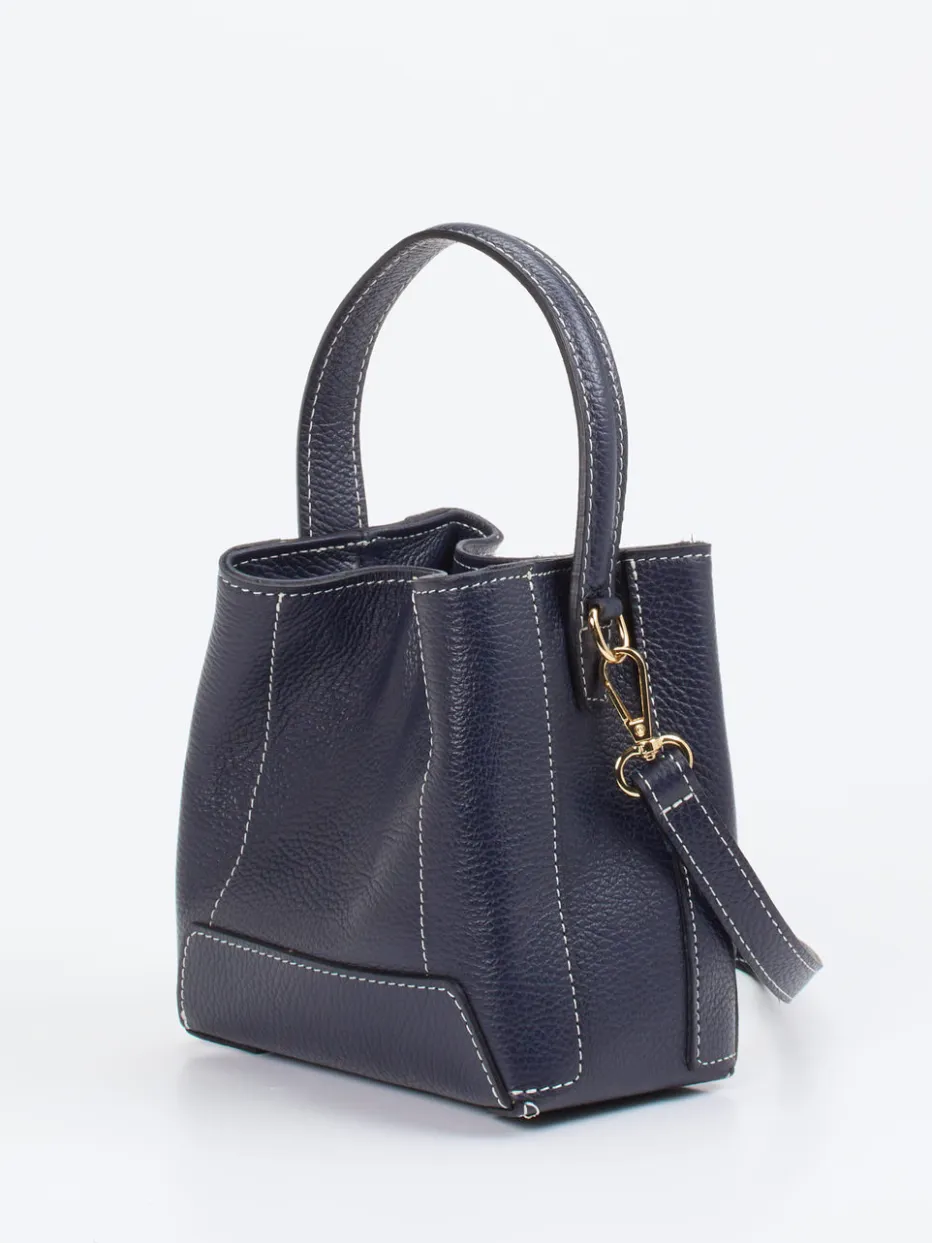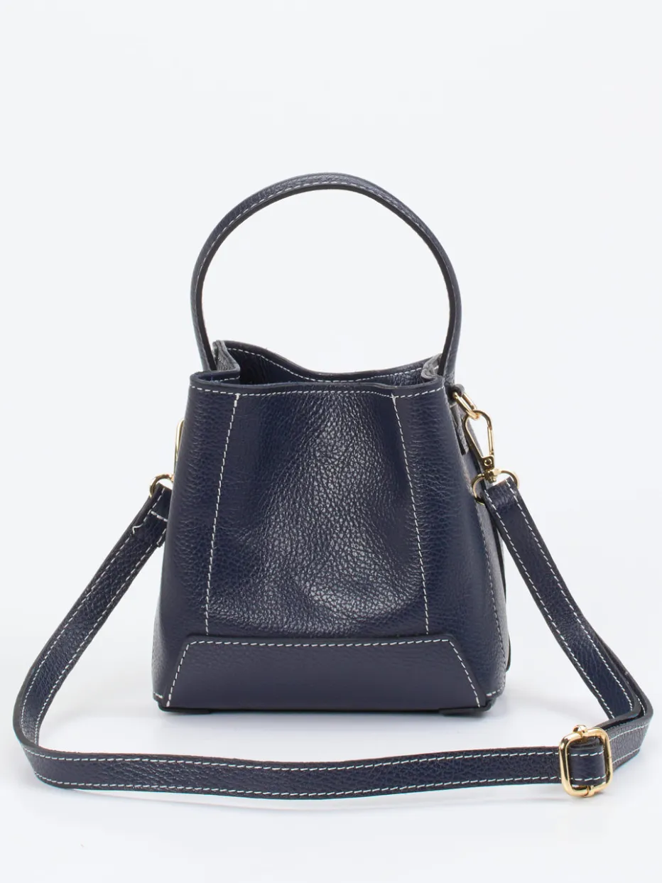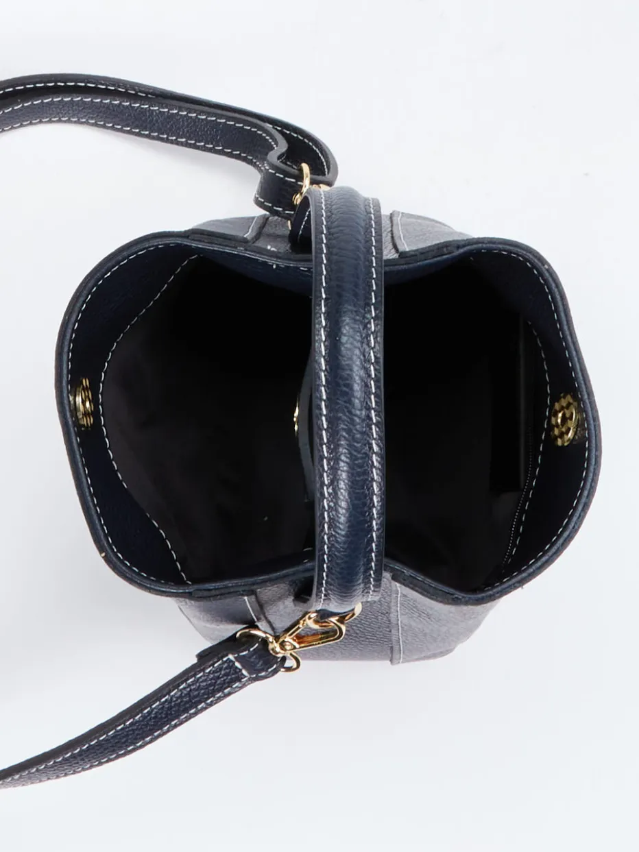 Einfach bezaubernd ist diese Minitasche der italienischen Marke Marlon Firenze. Das nachtblaue Kalbleder wird zusammen mit der filigranen Beutelform zum modischen Hingucker. Der Innenraum ist in zwei Teile aufgeteilt und enthält ein zusätzliches Reißverschlussfach. Bei Bedarf kann der Schulterriemen abgenommen werden. Starten Sie modisch durch mit dieser Minitasche – egal ob tagsüber beim Stadtbummel oder im Nachtleben! – Material: Kalbleder – Farbe: Nachtblau – Maße: 15 x 15 x 8 (H x B x T) – Schulterriemen: ca. 100 cm, verstell- und abnehmbar – Verschluss: Druckknöpfe