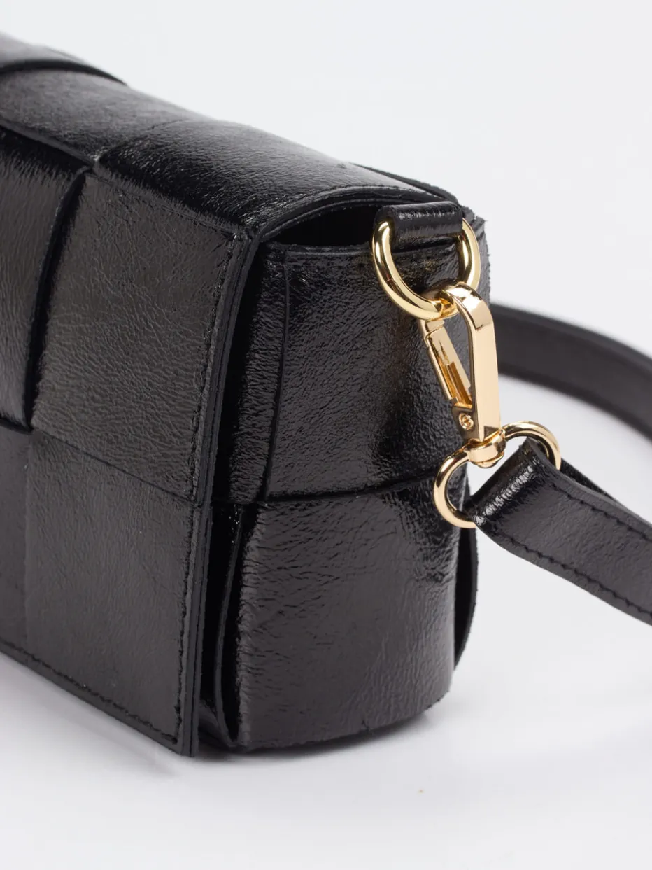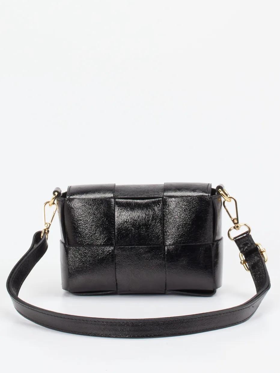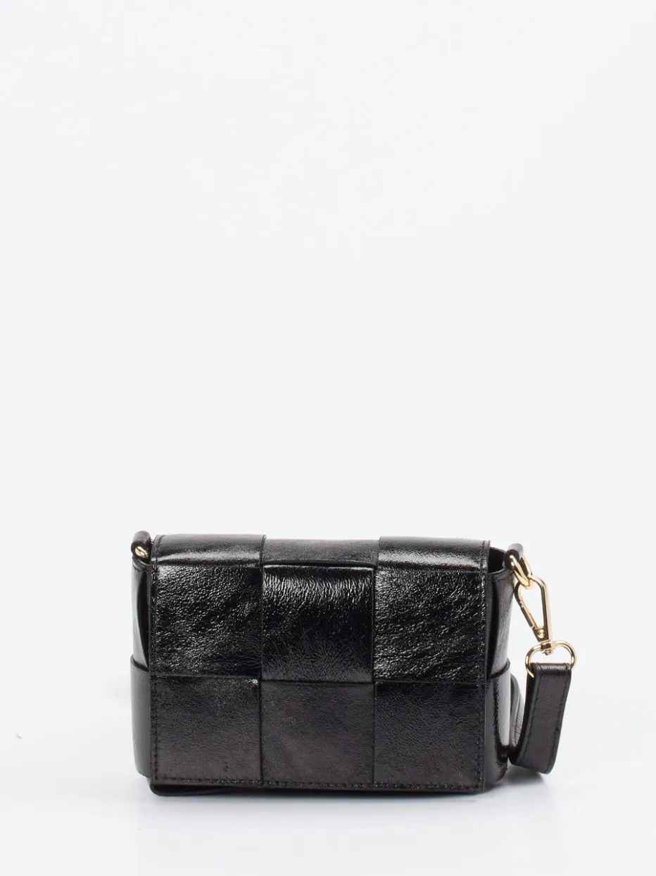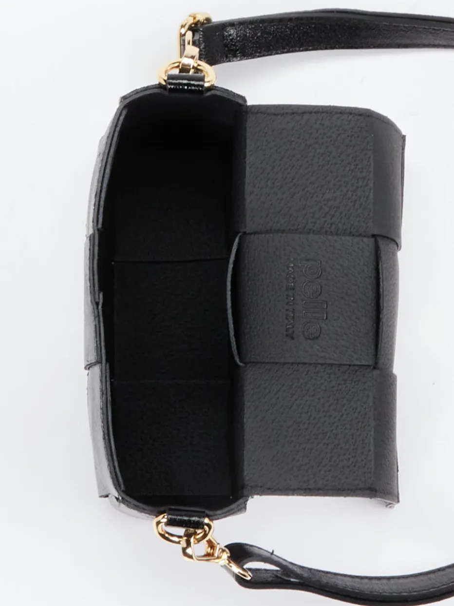 Ein attraktiver Allrounder ist diese Minitasche der Marke Marlon Firenze! Das Obermaterial aus hochwertigem Kalbleder im Metallic-Look mutet dezent retro an. In Schwarz gehalten, lässt es sich perfekt kombinieren. Der geflochtene Look unterstreicht den Charme des Models. Wie Sie die Tasche tragen, bleibt übrigens Ihnen überlassen: als Clutch oder doch mithilfe des eleganten Riemens über der Schulter. Ein perfektes Accessoire für viele Gelegenheiten! – Obermaterial: Kalbleder – Farbe: Schwarz – Größe: ca. 10 x 15 x 6 cm (H x B x T) – Schulterriemen: ca. 100 cm – Verschluss: Druckknopf