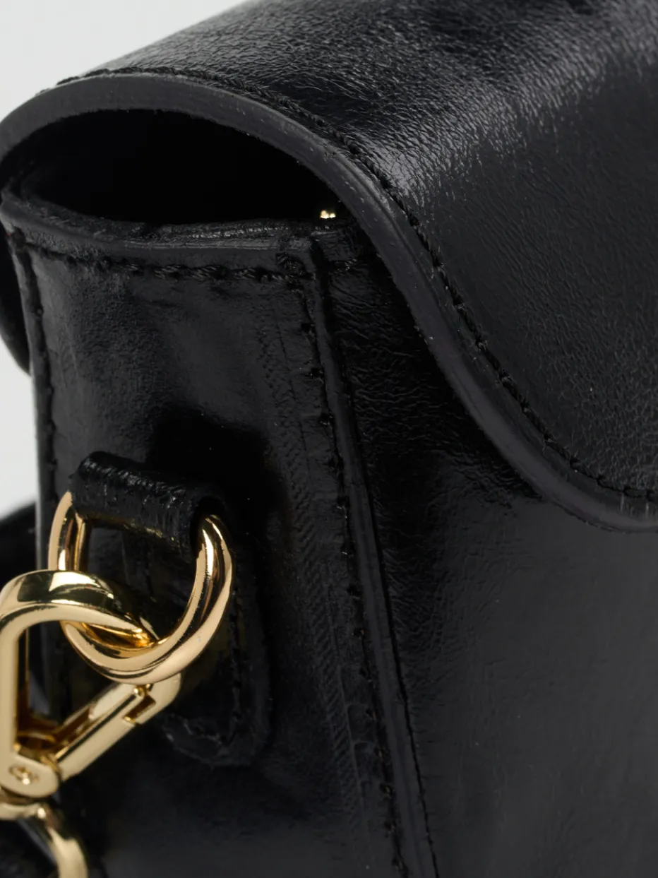 Diese elegante Minitasche kombiniert glänzendes Metallicleder mit goldfarbener Hardware und vereint minimalistischen Stil mit einem Hauch Vintage.