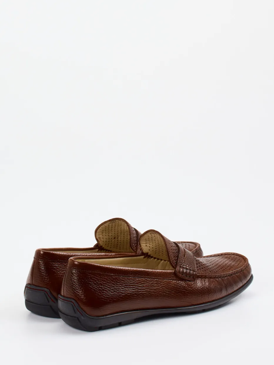 Formvollendete Eleganz für den modernen Alltag.Die Marke Quarvif präsentiert mit diesem Mokassin eine klassische Herrenschuhwahl für Büro und Freizeit. Das fein genarbte Hirschleder zeigt sich kastanienbraun mit strukturierter Oberfläche und Ton-in-Ton-Nähten. Luftige Cut-Outs, eine offenkantige Bride mit geschwungenem Schlitz sowie die flache Silhouette verleihen ein dezentes Designprofil. Die rutschhemmende Gummisohle im Autofahrerstil sorgt für Trittsicherheit, während das gepolsterte Lederfußbett höchsten Tragekomfort bietet. Ideal kombinierbar mit Chinos und Lederaccessoires in warmen Farbtönen. Ein Klassiker mit ruhiger Ausstrahlung – durchdacht bis ins Detail.