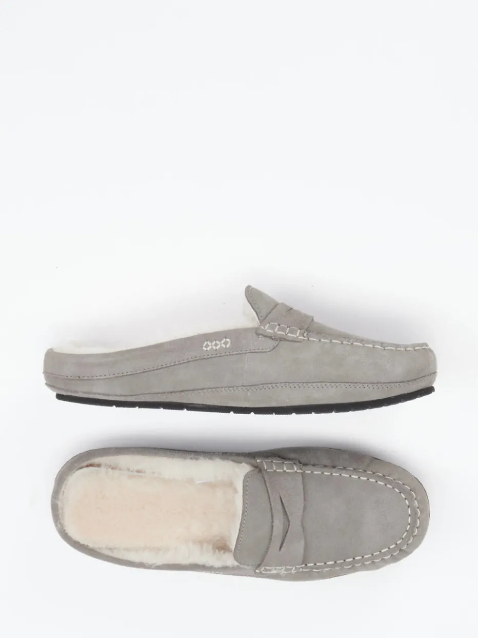 Komfort trifft auf klassische Eleganz.Der Hausschuh von Sioux überzeugt im Mokassin-Stil durch seine hochwertige Verarbeitung. Ideal für entspannte Stunden daheim oder den kurzen Gang vor die Tür: Die flache Silhouette kombiniert graues Kalbleder mit samtiger Veloursoptik, offener Ferse und warmem Lammfellfutter. Kontrastnähte in Offwhite betonen die klassische Form, während die Gummisohle sicheren Halt bietet – drinnen wie draußen. Das dezente Design fügt sich perfekt in einen modernen Loungewear-Look ein und passt zu gemütlichen Homewear-Outfits. Hochwertige Materialien und wohlüberlegtes Design stehen bei Sioux für langlebigen Komfort im Alltag.