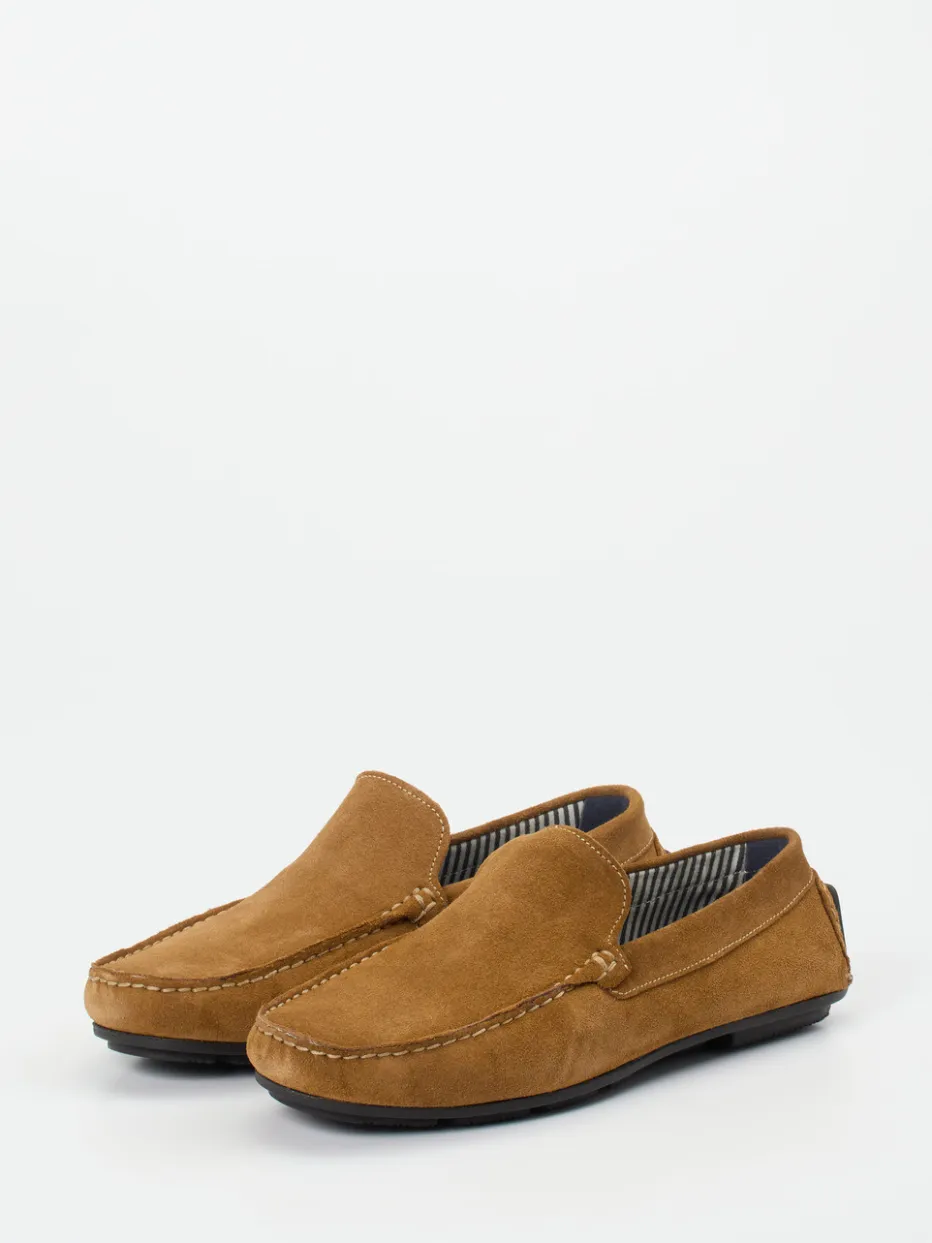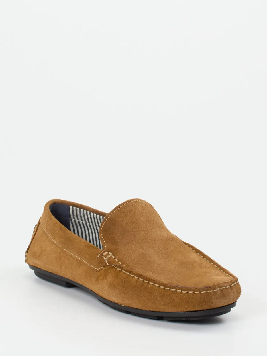 Der klassische Herrenschuh überzeugt durch weiches Veloursleder, ein gepolstertes Fußbett und eine flexible, profilierte Gummisohle – ideal für elegante Freizeit- und Office-Looks.