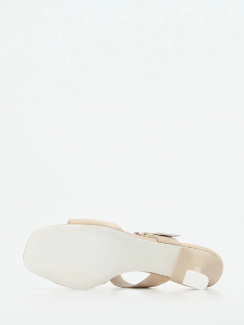 Für Anlässe von abendlichen Events bis sommerliche Dinner-Drinks bildet das beigefarbene Veloursleder mit samtiger Haptik die elegante Grundlage. Zwei breite Riemen unterstreichen die offene Silhouette mit eckiger Zehenpartie, während die mit Multicolor-Strass besetzte Schnalle einen expressiven Hingucker setzt. Der leicht ausgestellte Kitten-Heel ergänzt die modische Aussage mit stabiler Basis. Ideal zu Kleidern in Pastelltönen oder cleanen Sommer-Looks.