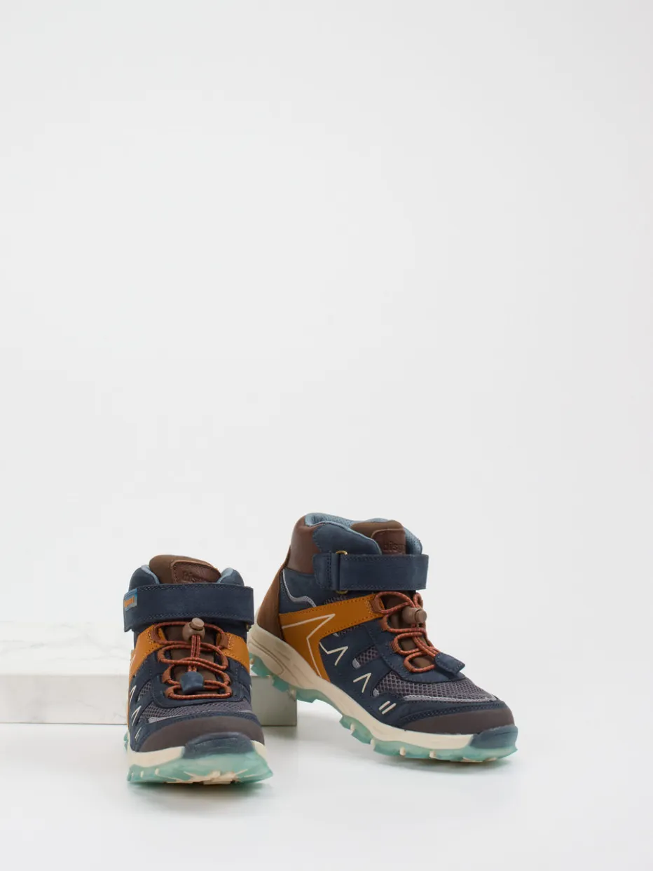 Begleiter für kleine Entdecker.Die Marke Bisgaard präsentiert funktionale Outdoor-Boots für Kinder. Ob Waldweg, Schulhof oder Wochenendausflug: Diese Boots aus Nubukleder, samtig angeschliffen und mit meshartigen Partien, trotzen Wind und Wetter. In Dunkelblau mit Akzenten in Senfgelb und Braun, setzen sie auf sportlich-mitten Schnitt und reflektierende Details. Die TEX-Membran sorgt für trockene Füße, die profilierte Gummisohle für sicheren Halt – auch bei Nässe. Klett und Stopper machen das Anziehen kinderleicht. Im Trend liegen sie mit Tech-Outdoor-Elementen und Streetwear-Einflüssen. Maximum an Funktionalität – im authentischen Bisgaard-Look.
