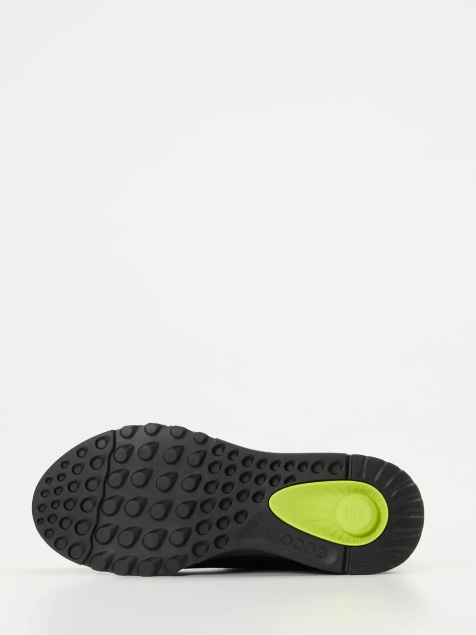 Funktionaler Begleiter für urbanes Terrain.Der Herren-Outdoor-Sneaker von Ecco kombiniert sportlich-dynamische Formgebung mit wetterfestem Komfort. Ideal für anspruchsvolle Alltagswege und spontane Outdoor-Abenteuer: Das wind- und wasserdichte Obermaterial besteht aus atmungsaktivem Mesh mit synthetischen Verstärkungen und reflektierenden Details. Die dominante Schwarzfärbung wird durch neonfarbene Akzente belebt und unterstreicht den techwear-inspirierten Look. Das elastische Schnellzugsystem ermöglicht schnelles An- und Ausziehen, während die rutschfeste Profilgummisohle Standfestigkeit verleiht. Dank GORE-TEX®-Membran bleibt das Fußklima jederzeit angenehm. Ecco steht hier für durchdachte Performance mit stilsicherer Outdoor-Kompetenz.