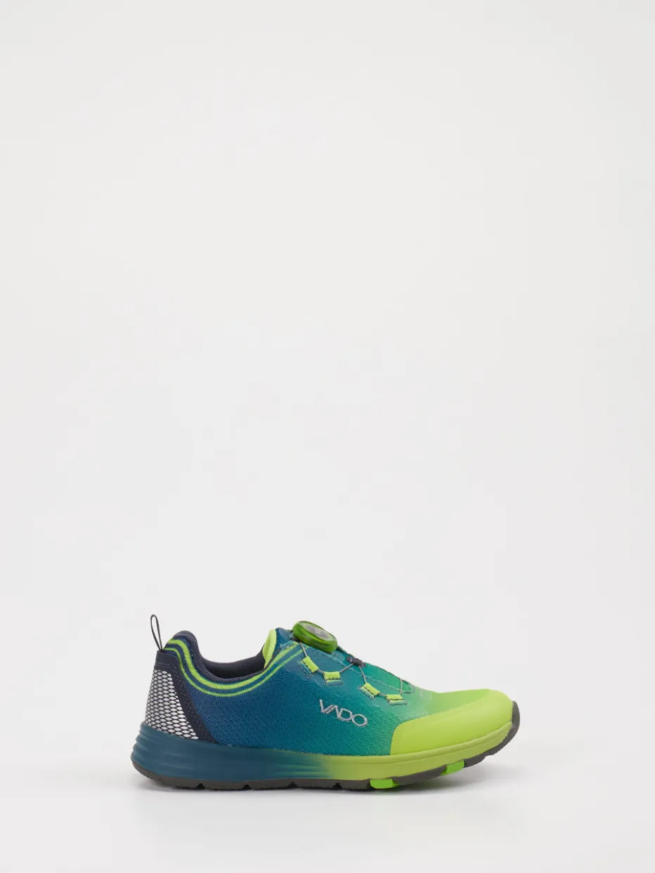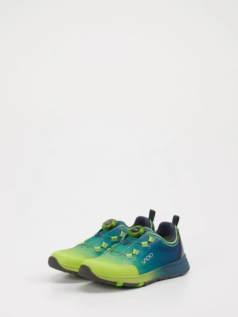 Bereit für jedes Abenteuer. Der Outdoor-Sneaker von Vado für Kinder überzeugt mit sportlichem Charakter und durchdachter Funktionalität. Ideal für aktive Tage zwischen Spielplatz und Waldpfad: Das atmungsaktive Textil-Obermaterial ist in einem markanten Farbverlauf aus Neongrün und Petrolblau gestaltet. Die Gummisohle mit Flex-Zone bietet zusammen mit dem BOA-Drehverschluss hervorragenden Halt und Komfort bei voller Bewegungsfreiheit. Reflektierende Elemente an der Ferse erhöhen die Sichtbarkeit bei Dämmerung. Streetwear-Einflüsse und Gorpcore-Trends unterstreichen den modischen Anspruch. Ein funktionaler Blickfang mit kindgerechtem Design und durchdachter Ausstattung.