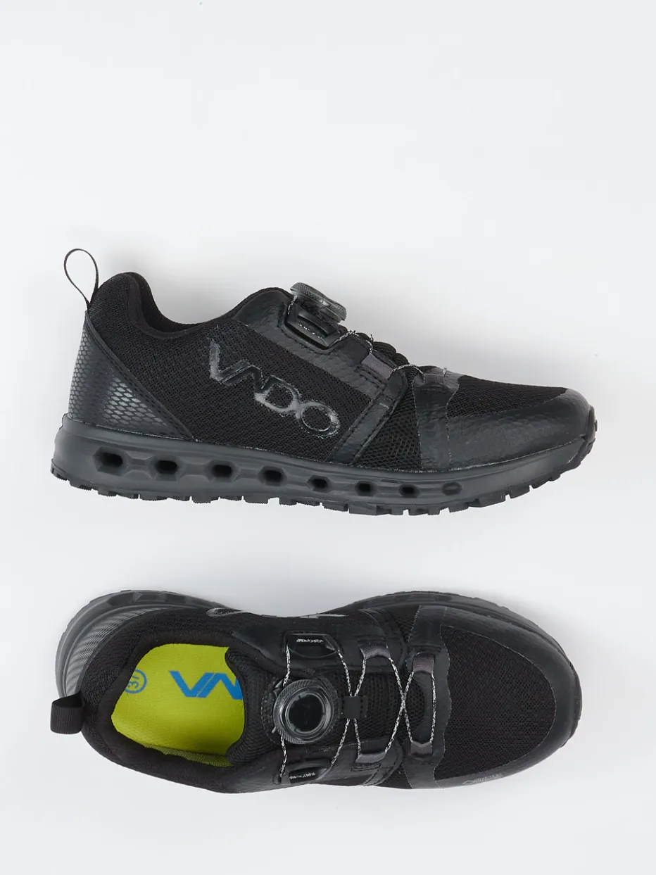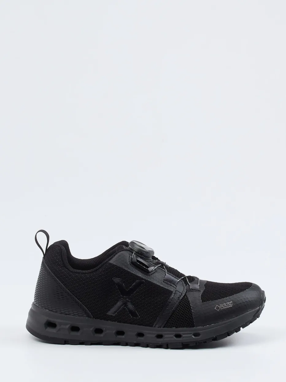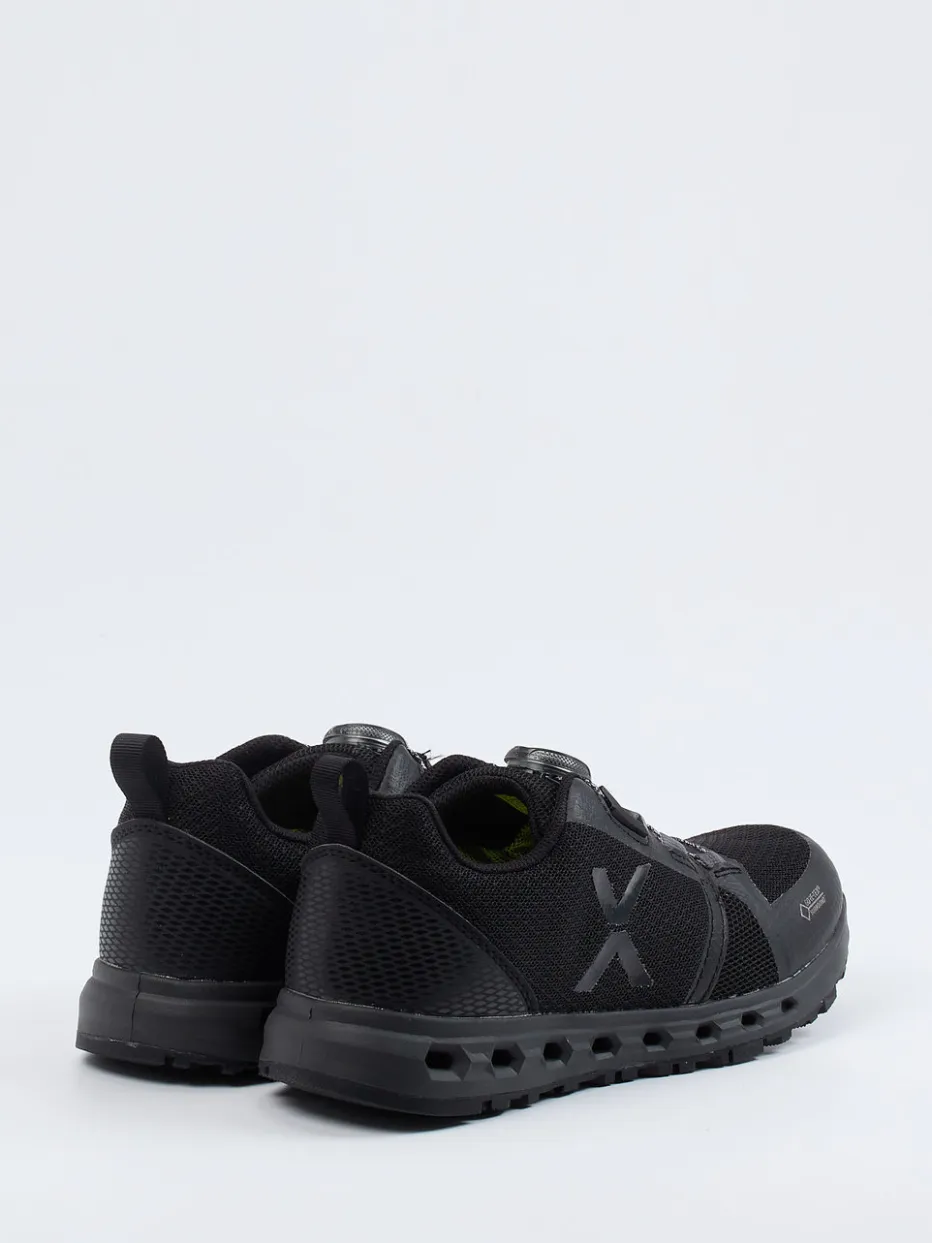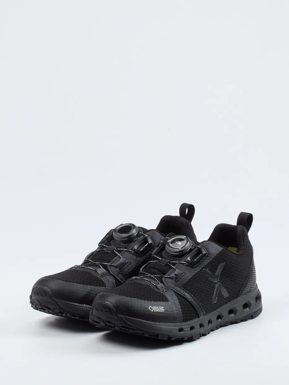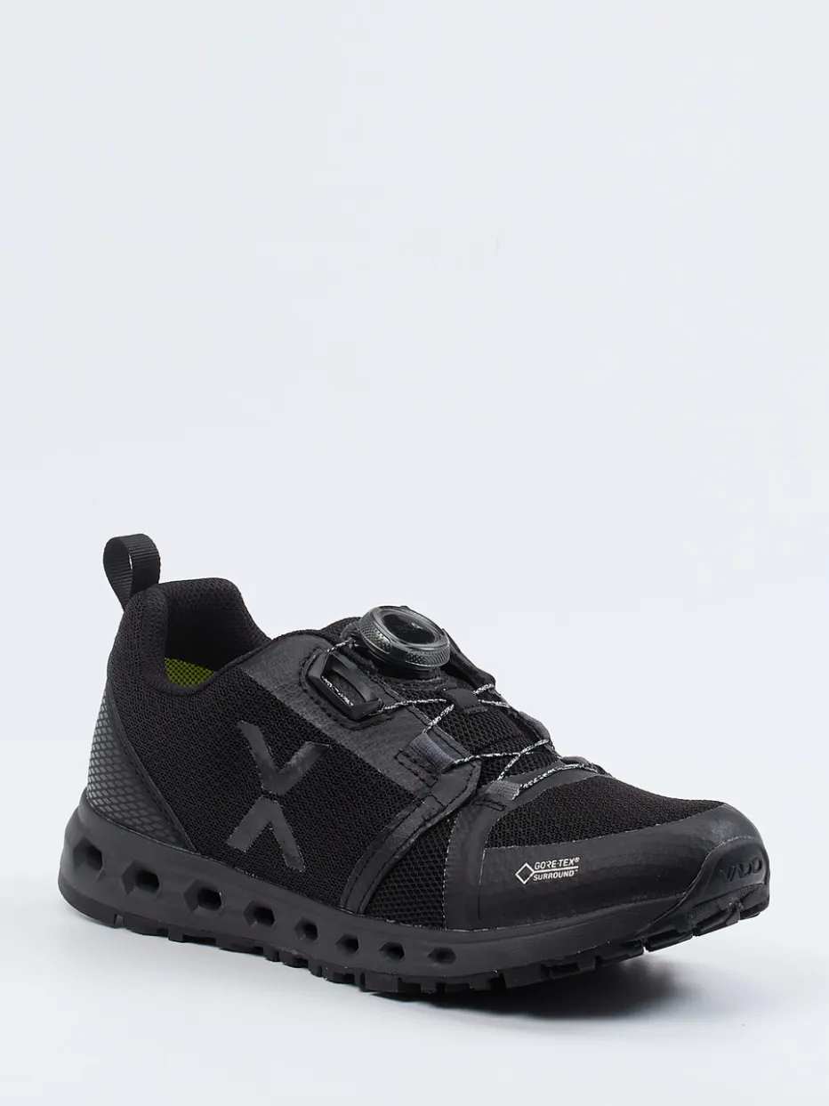 Tech trifft Funktion im Alltag.Vado präsentiert einen Outdoor-Sneaker, der Funktionalität in sportiver Formensprache vereint. Ob beim Spaziergang durch den Regen oder auf dem Wanderpfad – das rundum atmungsaktive Textilmaterial mit GORE-TEX SURROUND® schützt zuverlässig vor Nässe. Das tiefschwarze Finish hebt die kompakte, moderne Silhouette hervor, während reflektierende Details und das leichtgängige BOA-System mit Drehverschluss technische Präzision ins Design bringen. Die rutschfeste Gummisohle mit FLEX ZONE unterstützt ein dynamisches Laufgefühl. Die ausstrahlende Techwear-Ästhetik passt perfekt zum Gorpcore-Trend. Kombiniert mit einem Outdoor-Rucksack entsteht ein funktionaler Streetstyle-Look. Markentypisch komfortabel mit innovativer Schnürtechnologie und hoher Alltagstauglichkeit.