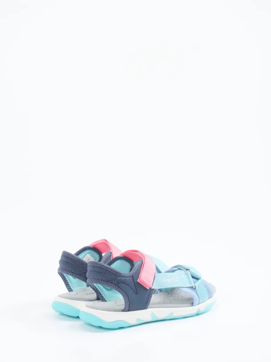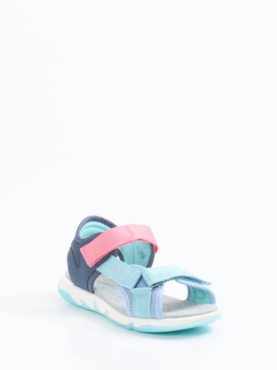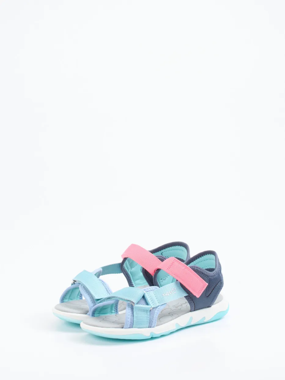 Für unbeschwerte Sommertage auf Spielplatz und Reisen.Die Kindersandalen von Superfit vereinen Komfort und Funktion im sommerlichen Design. Das hellblaue Textilmaterial mit matter Oberfläche ist durch marine- und korallfarbene Akzente sportlich color-blocked inszeniert. Die offene, ergonomisch geschnittene Silhouette mit Klettverschlüssen und gepolstertem Fersenbereich sorgt für hohen Tragekomfort und sicheren Halt. Dank der Gummisohle mit rutschhemmendem Profil bleiben Kinder auch auf unebenem Untergrund stabil. Die pflegeleichte, schnelltrocknende Verarbeitung macht sie zur idealen Urlaubsbegleitung. Besonders harmonisch wirkt der Look zu UV-Shirts oder bunten Shorts. Superfit bietet hier farbintensive Alltagstauglichkeit für kindgerechtes Abenteuergefühl.