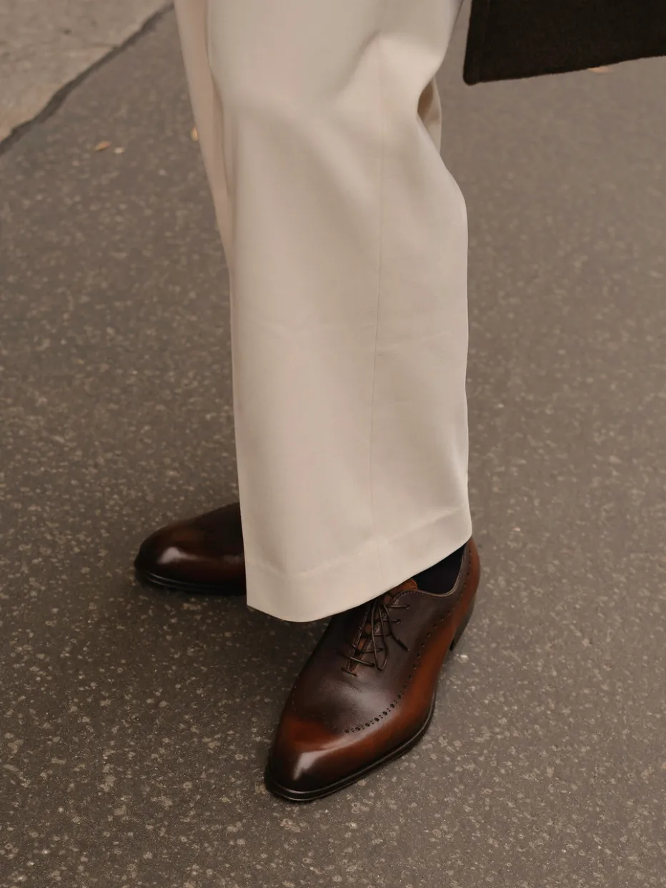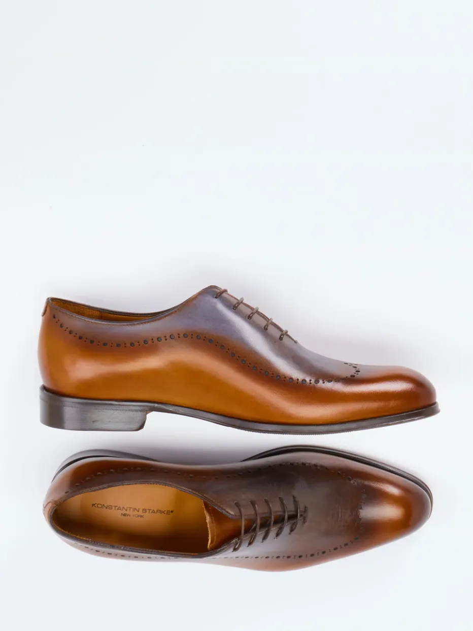 Der klassische Oxford von Konstantin Starke kombiniert feinstes Kalbleder mit subtiler Broguing-Lyrik und changierendem Farbspiel. Ein Statement für formelle Looks mit handwerklicher Finesse.