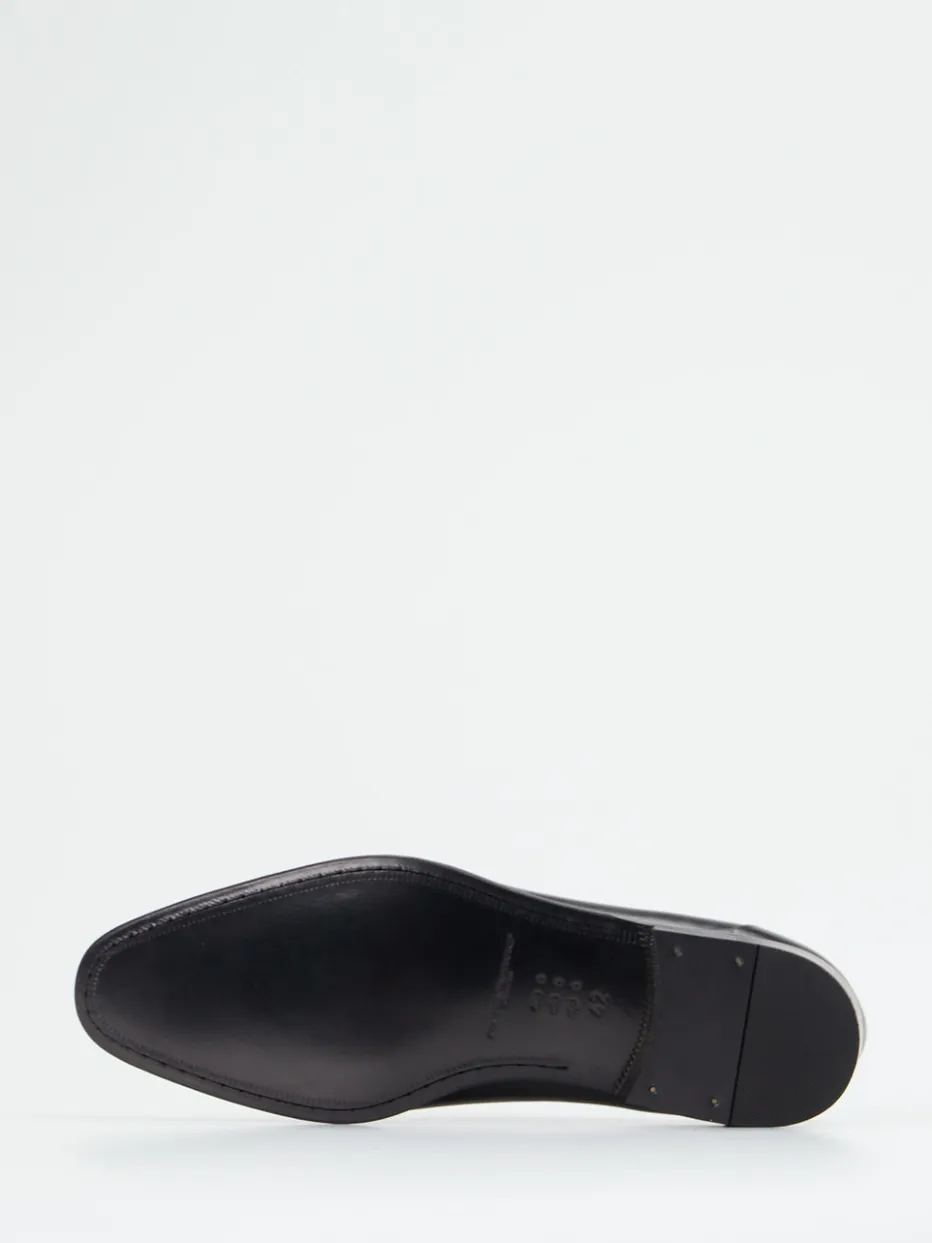 Dieser Herren-Oxford kombiniert edles Kalbleder mit eleganter Linienführung und glänzender Oberfläche – ein Klassiker für formelle Anlässe und Business-Auftritte.