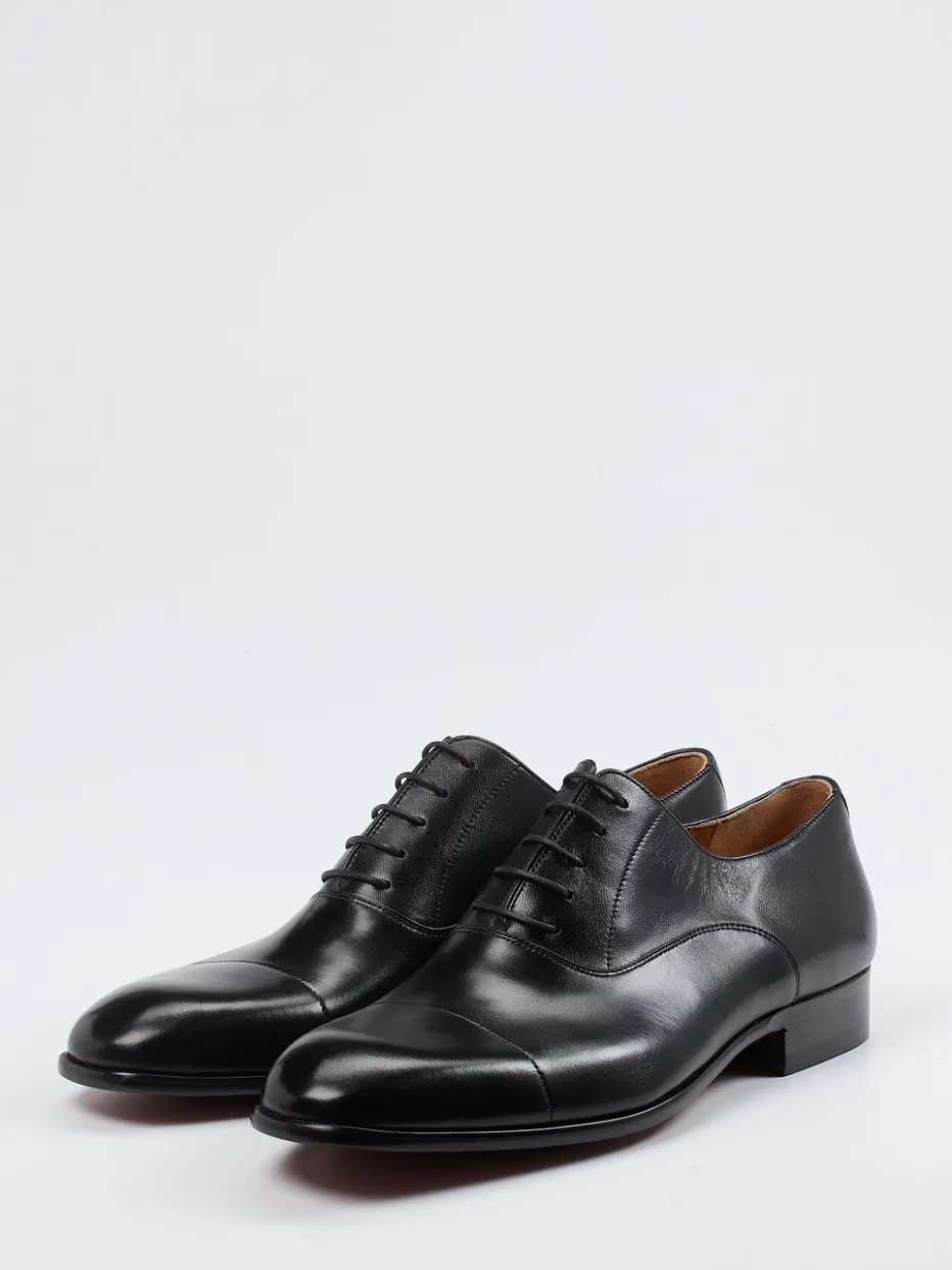 Ein klassischer Oxford in edlem Lammleder mit geschlossener Schnürung und feiner Kappennaht – ein stilvoller Begleiter für anspruchsvolle Anlässe.