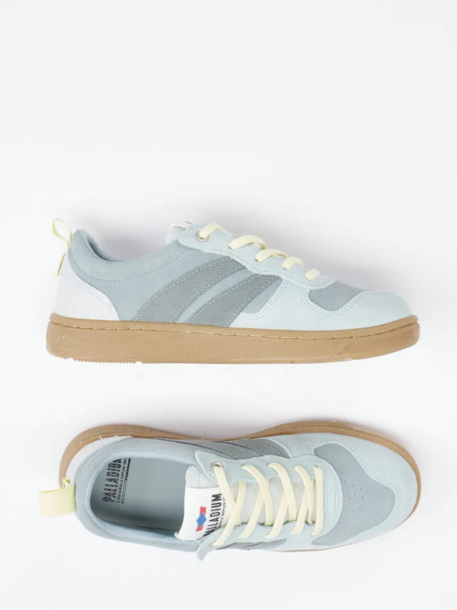 Pastell trifft Retro-Court.Die Marke Palladium präsentiert mit diesen Low-Top Sneakern ein modisches Freizeitmodell für Unisex-Fans. Ob City-Walk oder lässiger Alltag – der Sneaker punktet durch sein samtig angeschliffenes Veloursleder kombiniert mit luftigem Textil. Blaugrau dominiert als Grundton, ergänzt durch pastellgelbe und offwhitefarbene Akzente in Form von Ziernähten und Markenlabels. Die flache Silhouette, tonale Schnürung und eine rutschhemmend profilierte Gummisohle runden das Design sportlich ab. Mit seiner klaren Retro-Sportswear-Anmutung greift der Schuh aktuelle Streetwear-Trends stilsicher auf. Besonders harmonisch in Kombination mit hellen Basics oder leichten Rucksäcken. Palladium verbindet stilbewusste Farbwelten mit urbaner Alltagstauglichkeit.