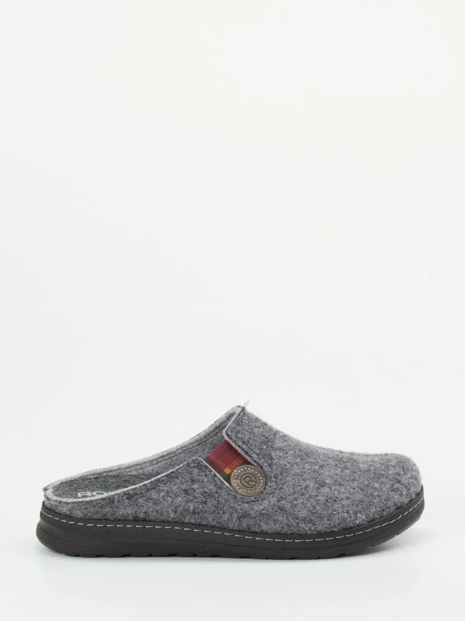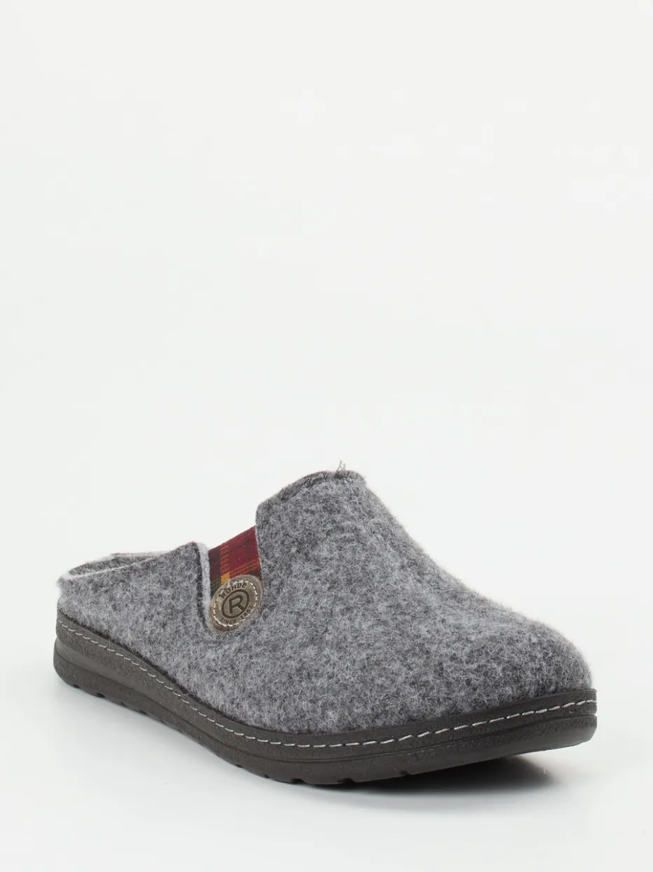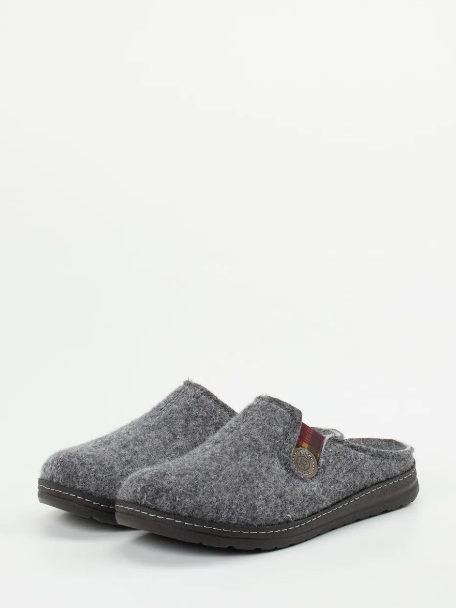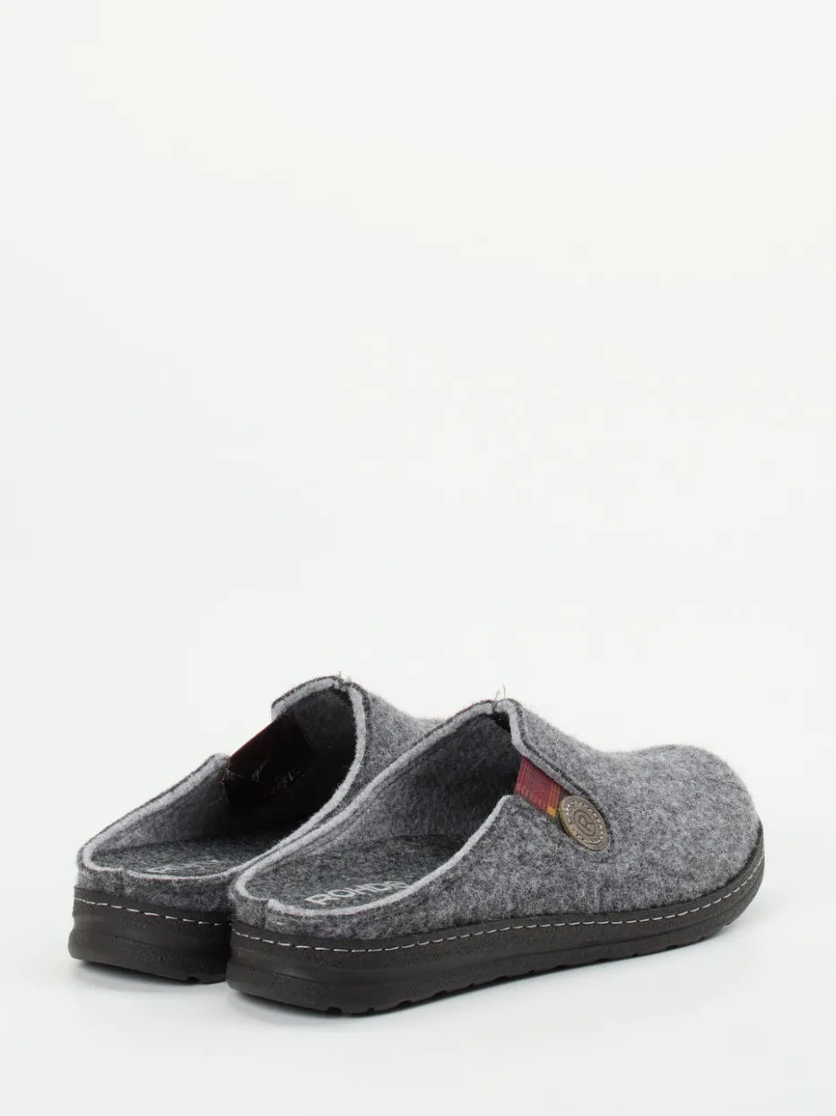 Der Rohde Pantoffel verbindet strapazierfähigen, grau melierten Filz mit einem besonders weichen Fußbett und rutschfester Laufsohle – ideal für komfortorientiertes Relaxen.