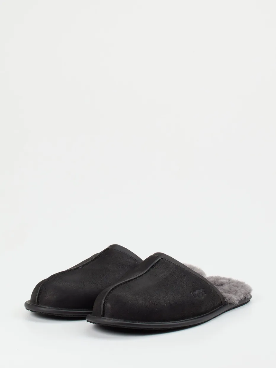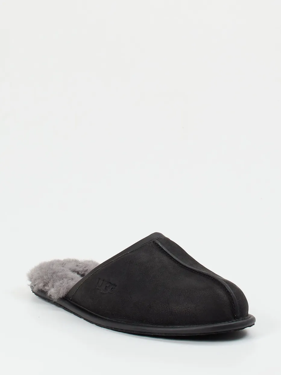Warmer Komfort für stilvolle Ruhezeiten.UGG präsentiert mit diesen Pantoffeln einen Klassiker für die kalte Jahreszeit. Bei kühlen Temperaturen sorgt das dichte, graue Lammfellfutter für ein rundum wohliges Tragegefühl. Außen überzeugt gewachstes Nubukleder, ergänzt durch eine matte Optik und dekorative Mittelnaht. Ton-in-Ton-Nähte und das geprägte Logo unterstreichen das schlichte Design im minimalistischen Stil. Die geschlossene Form mit offener Ferse und die anschmiegsame Passform passen perfekt zum Loungewear-Trend. Ein Hausschuh mit langlebiger Qualität und charakteristischer UGG-Komfortsignatur.