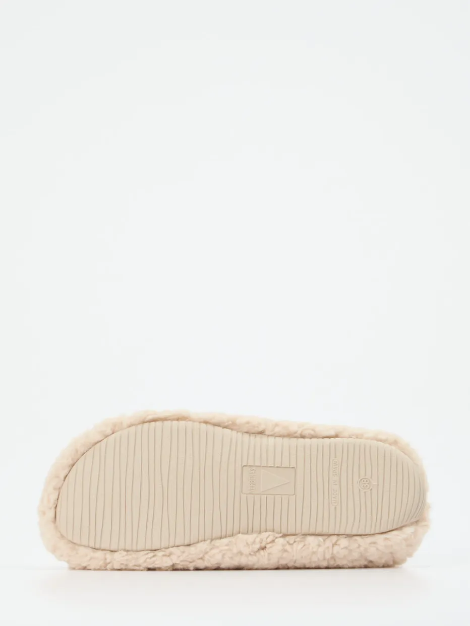 Komfort für gemütliche Wintertage.Die Marke Verbenas präsentiert diesen unisex Pantoffel für drinnen. Wenn es draußen kühler wird, bietet dieser Hausschuh kuscheligen Rückzugsort. Aus Textil gefertigt, punktet er mit flauschiger Kunstfell-Oberfläche und einem besonders weichen Innenfutter in Beige. Die geschlossene Vorderpartie und die offene Ferse formen eine bequeme Silhouette in Schlupfform. Ein seitlicher Label-Patch ergänzt das minimalistische Design stimmig. Die rutschfeste Gummisohle sorgt für Sicherheit auf glatten Böden. Inspiriert von Loungewear-Trends, passt er ideal zu soften Materialien und relaxed geschnittenen Homewear-Looks. Verbenas verbindet stilvolle Schlichtheit mit hohem Wohlfühlfaktor im Alltag.