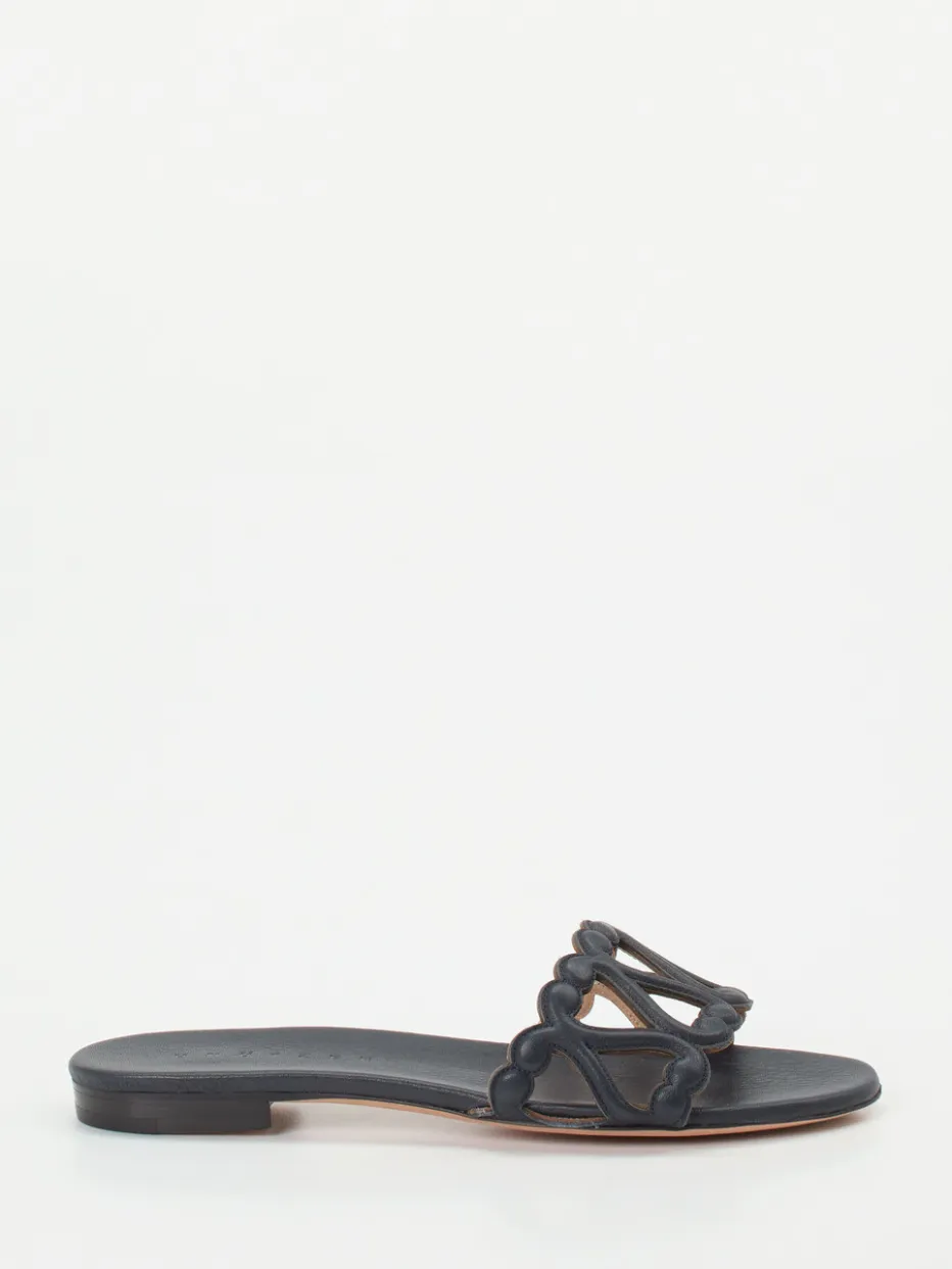Diese fein gearbeitete Lederslide vereint mediterrane Leichtigkeit mit minimalistischer Raffinesse – ideal für anspruchsvolle Sommerlooks.