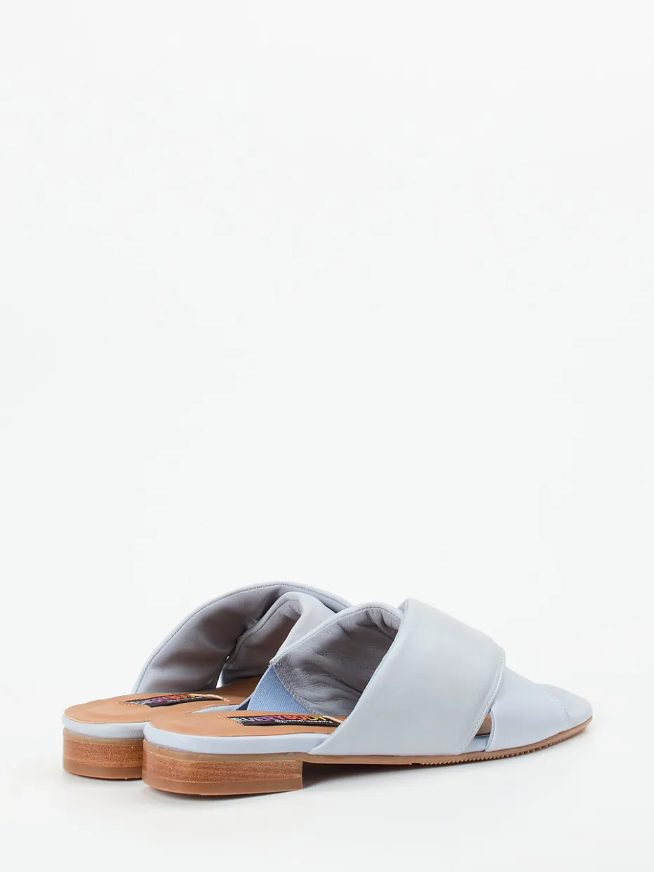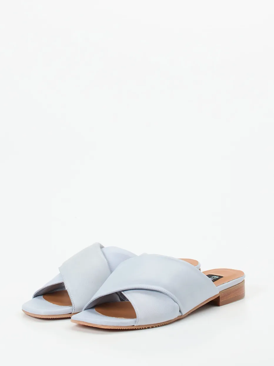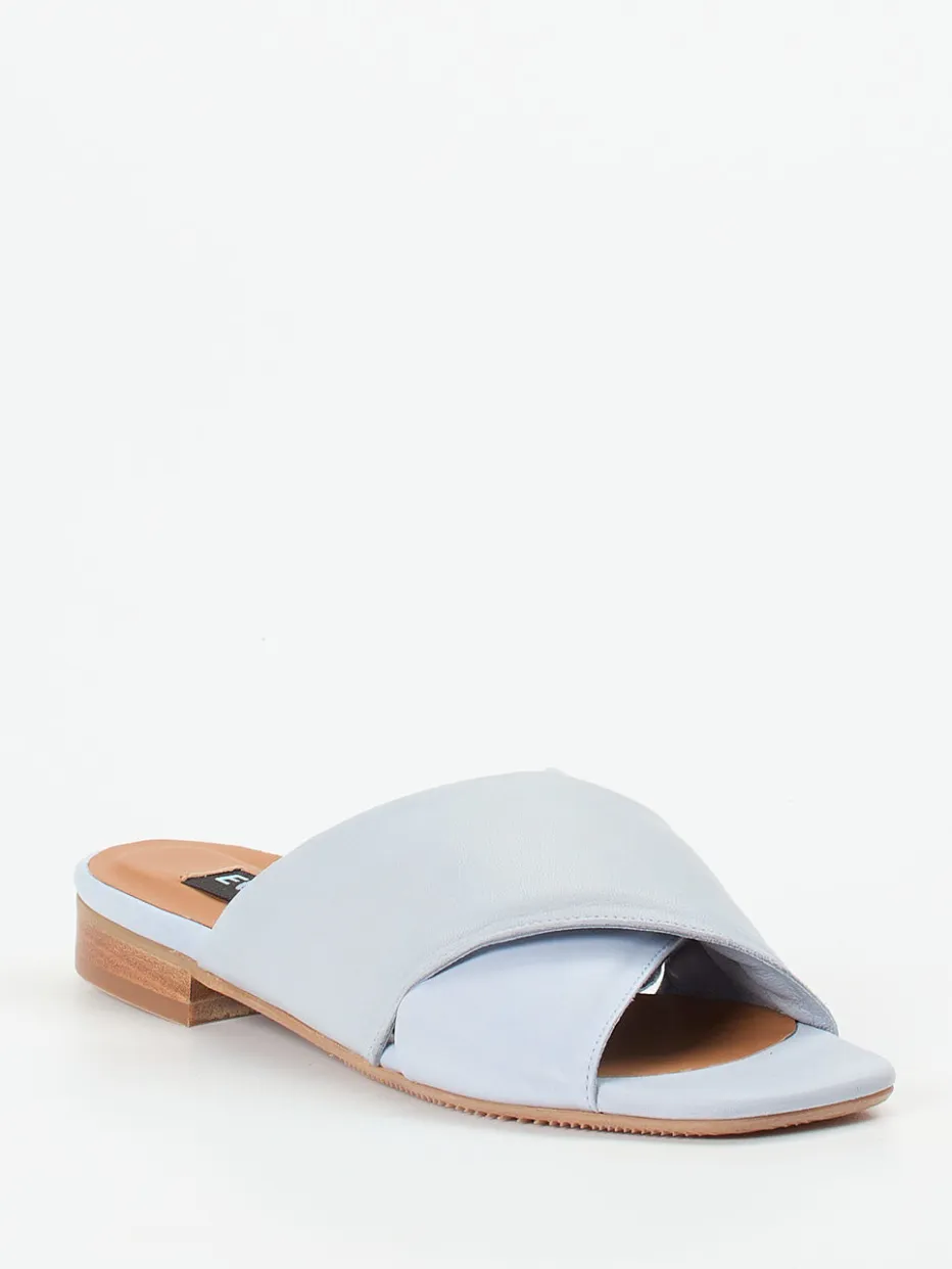 Leichtigkeit trifft zurückhaltende Eleganz.Die Damen-Pantolette von Everybody überzeugt als sommerlicher Begleiter mit minimalistischem Charme. Ob im Urlaub oder im Alltag – das pastellblaue Lammleder mit matter Oberfläche wirkt dank breiter, wattierter Kreuzriemen besonders feminin und sorgt zugleich für Komfort. Der flache Absatz in dezenter Holzoptik vervollständigt das luftige Design, während das gepolsterte Innenfutter ein angenehmes Tragegefühl garantiert. Elemente wie Ton-in-Ton-Nähte und eine strukturierte Profilsohle betonen die cleanen Linien und den raffiniert reduzierten Stil. Kombiniert mit hellen Leinenstoffen entsteht ein sommerlicher Look im Geist des „Quiet Luxury“. Hochwertige Materialien und zeitgemäßes Understatement kennzeichnen die Qualität von Everybody.