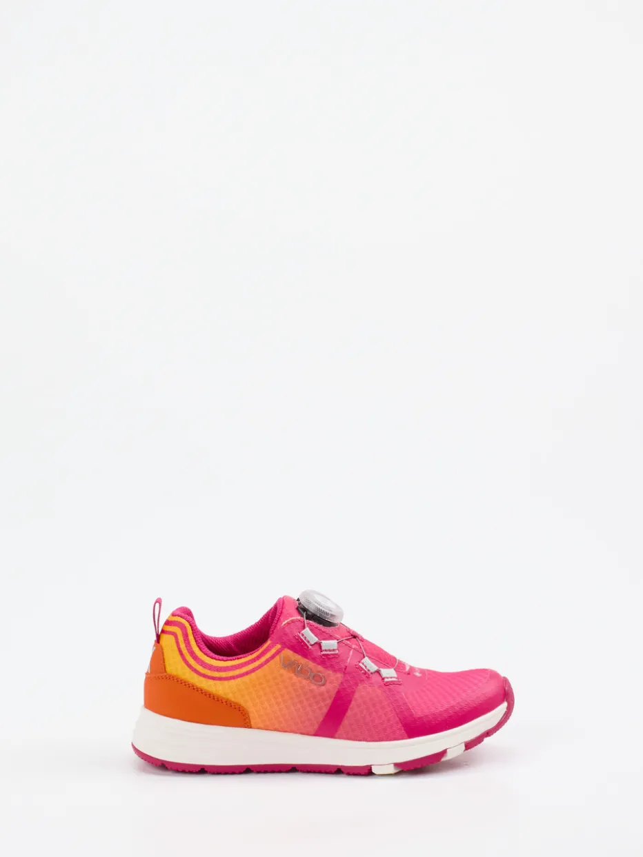 Für aktive Kids mit Stil.Vado bietet mit diesem Performance-Sneaker für Kinder eine sportlich-ausdrucksstarke Wahl für Alltag und Training. Das Modell vereint atmungsaktives Textil-Mesh mit einer matten Oberfläche und setzt auf ein expressives Color-Blocking in Pink und Orange. Der BOA-Drehverschluss ermöglicht schnelles An- und Ausziehen; eine Zuglasche an der Ferse unterstreicht die funktionale Ausrichtung. Die rutschhemmende Gummisohle, reflektierende Details und ein markanter Logo-Print ergänzen das sportliche Design. Ein klarer Trendsetter im Bereich Performance Gear Kids und ideal abgestimmt auf Street- und Techwear-Einflüsse. Vado verbindet Komfort, modernes Design und kindgerechte Performance auf hohem Niveau.