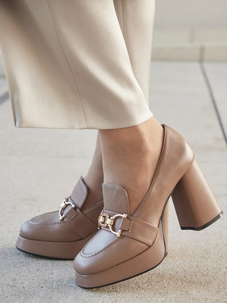 Dieser elegante Plateau-Loafer aus weichem Lammleder vereint Retro-Flair mit modernem Design – perfekt für stilbewusste Looks mit komfortablem Auftritt.