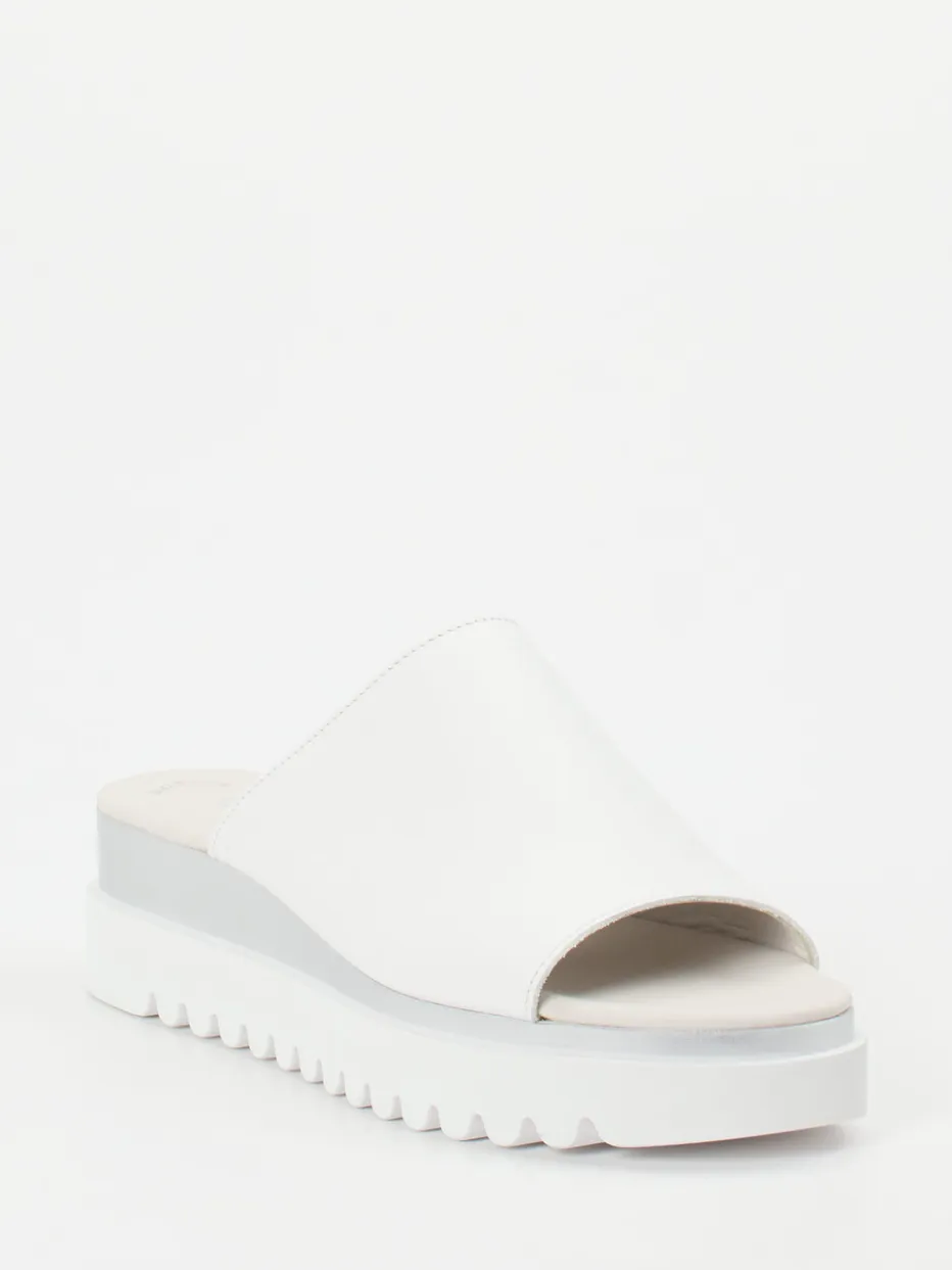 Sommerkomfort trifft Stil.Die Damen-Pantolette von Gabor steht für minimalistischen Chic und entspannten Komfort. Ideal für Urlaub oder Stadtbummel: Der breite Riemen aus weißem Kalbleder legt sich weich über den Fuß, während das dezente Soft-Fitting-Fußbett für Wohlgefühl sorgt. Ein offener Schnitt und die in Silber und Weiß gehaltene Plateausohle mit Rillenprofil ergänzen den trendigen Look. Dank Schlupfform lässt sich die Sandale mühelos an- und ausziehen. Ihr cleanes Design greift den Quiet-Luxury-Trend der Saison auf. Gabor vereint modernen Streetstyle mit bewährter Passform-Kompetenz.