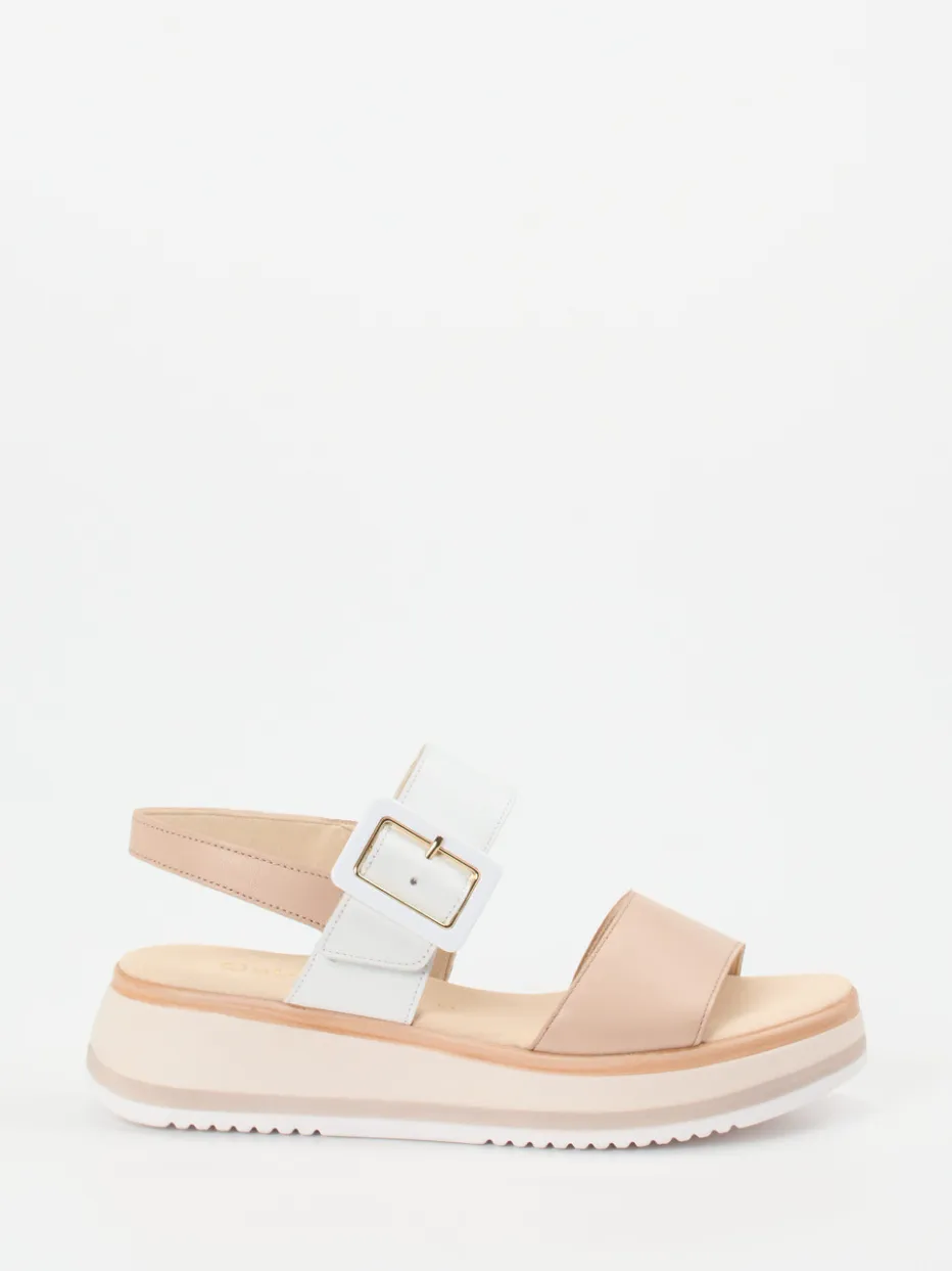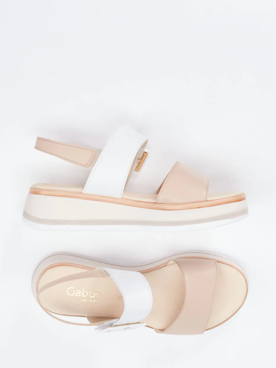 Soft Neutrals mit Komfort-Faktor.Gabor Comfort präsentiert bequeme Plateau-Sandalen für Damen. Ideal für Alltag oder Urlaub: Diese Sandalen kombinieren modernes Design mit funktionalem Komfort. Gefertigt aus hochwertigem Kalbleder mit matter Oberfläche zeigen sich die breiten Riemen in einem soften Beigeton, ergänzt durch eine goldfarbene Schnalle. Die profilierte, mehrlagige Plateausohle verleiht den Schuhen einen femininen Touch und unterstützt zusammen mit dem weich gepolsterten Fußbett das Gehen. Minimalistische Linienführung und helle Neutralfarben entsprechen dem Soft-Neutrals-Trend. Bequemlichkeit auf stilvolle Weise – typisch Gabor Comfort.
