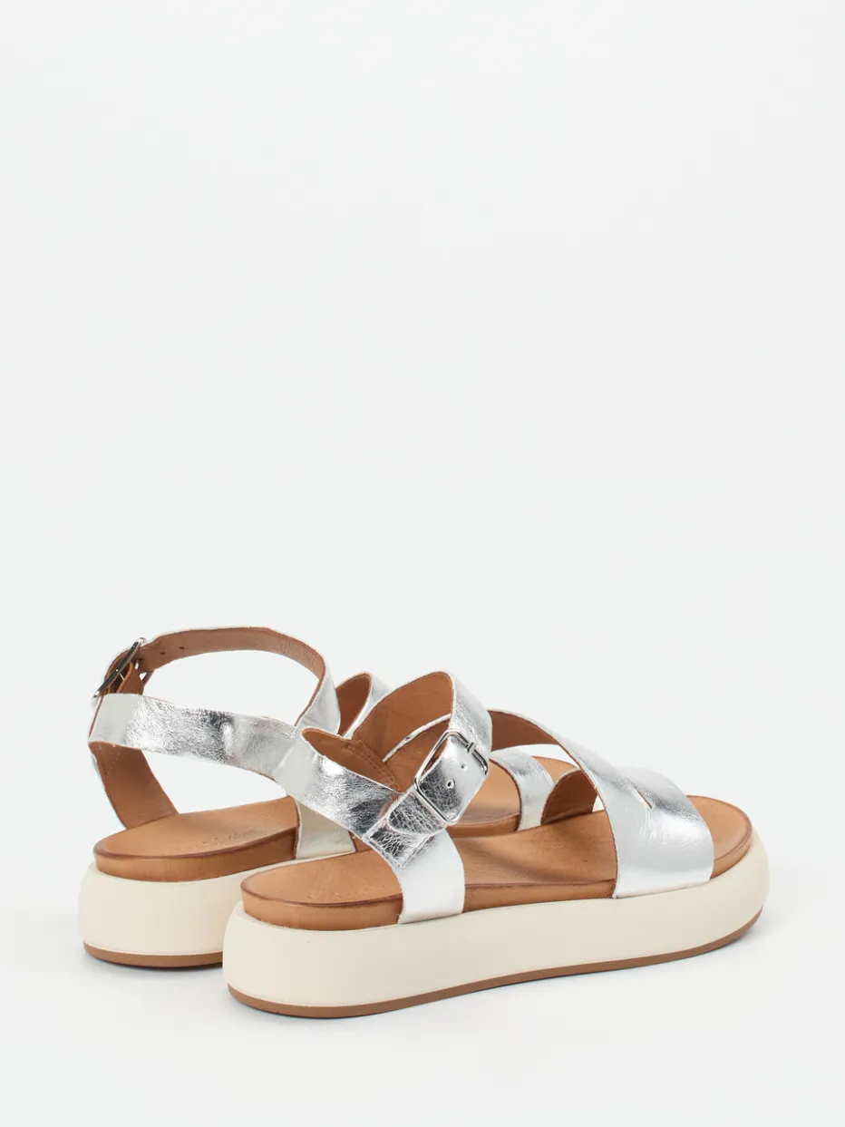 Glänzender Komfort trifft auf sommerliche Leichtigkeit.Andrea Sabatini präsentiert mit dieser Damen-Plateau-Sandale ein stilistisch prägnantes Modell. Ideal für urbane Sommertage oder Urlaubsspaziergänge vereint diese Sandale glänzendes Metallicleder mit einer komfortabel gepolsterten Leder-Innensohle. Breite, asymmetrisch verlaufende Crossover-Riemen in Silber unterstreichen die modische Plateauform. Die verstellbare Metallschnalle sorgt für optimalen Halt, während die weiße Gummisohle mit hellbraunen Akzenten durch Rutschfestigkeit und dezente Höhe überzeugt. Das Design nimmt aktuelle Modeimpulse wie Metallic Accents und Comfort Platforms stilvoll auf und passt perfekt zu minimalistischen Looks mit Fokus auf Materialien. Ein Statement-Piece mit ausgewogener Verbindung von Ästhetik und Tragekomfort.