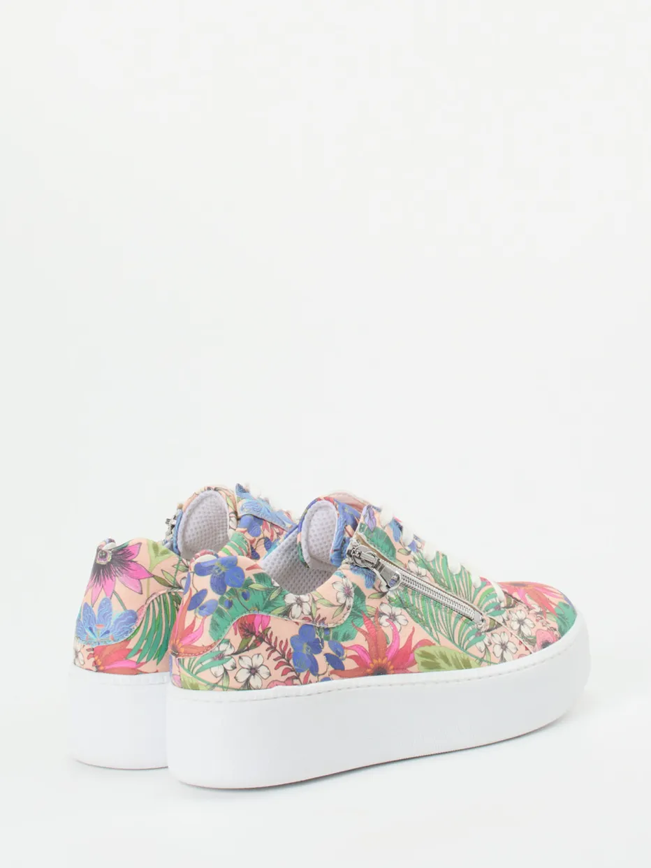 Dieser Plateau-Sneaker von Waldläufer vereint florales Design mit praktischem Komfort. Hochwertiges Leder, individuelle Passform und sommerliche Farbtöne sprechen stilbewusste Trägerinnen an.