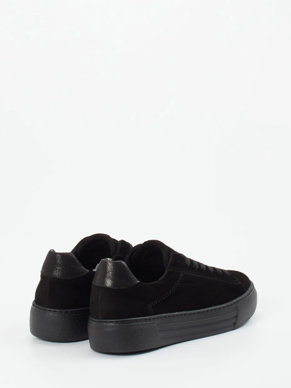 Dieser Sneaker vereint samtiges Veloursleder in Schwarz mit einer funktionalen Plateausohle – ein stilvoller Begleiter für moderne Casual-Looks mit Komfortanspruch.