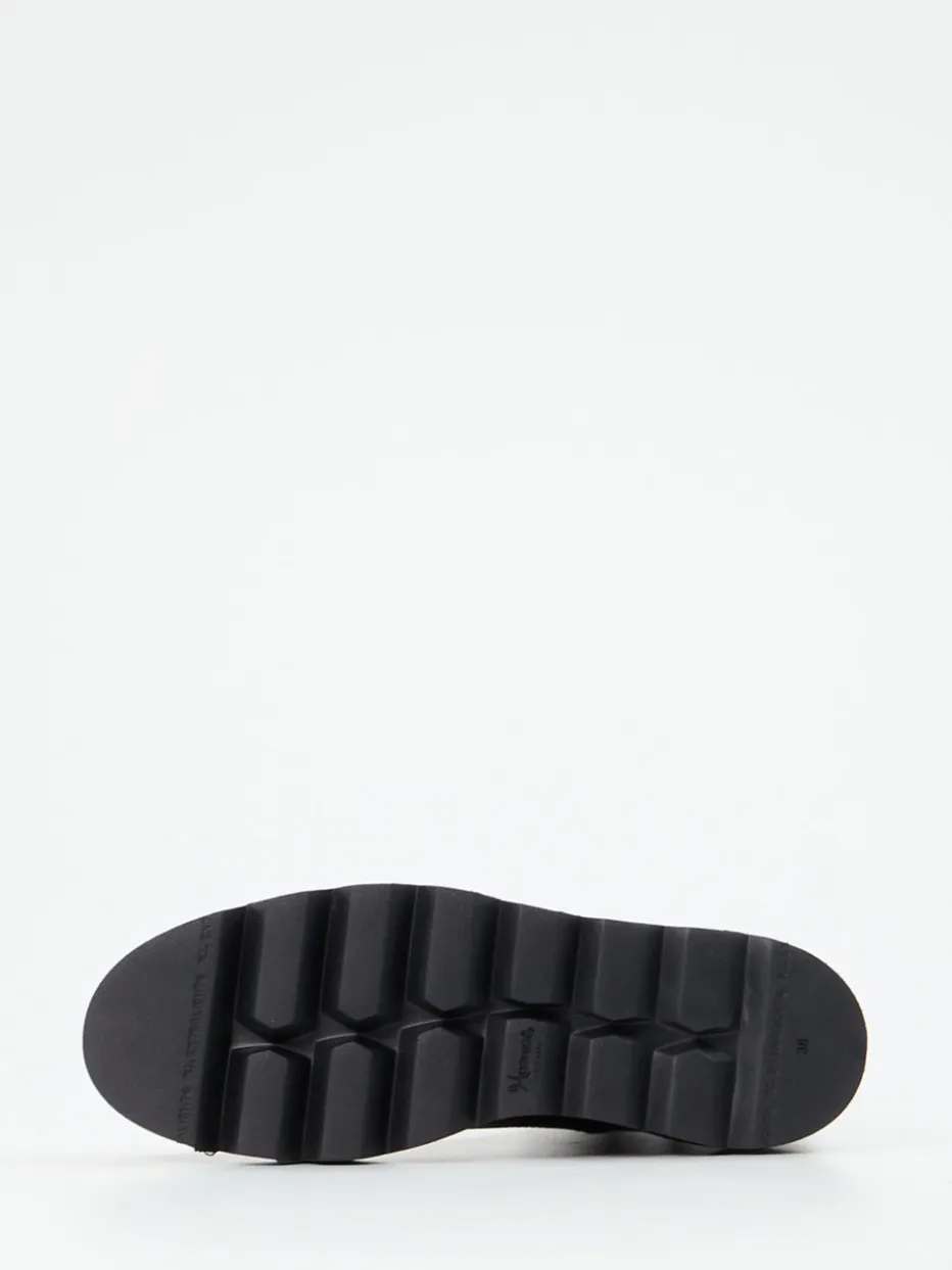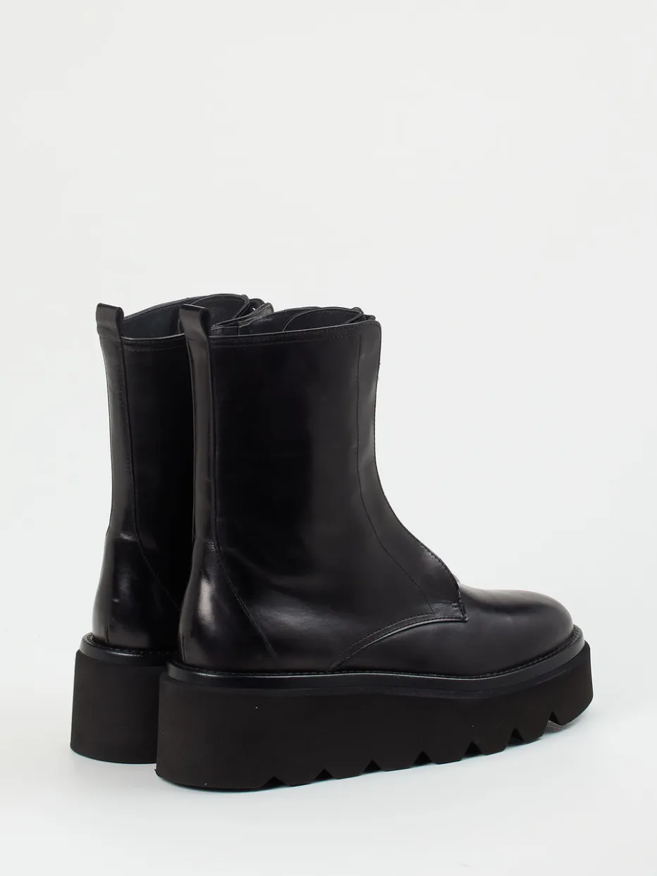 Statement-Stiefelette für stilbewusste Looks.Die Marke Homers präsentiert eine Damen-Stiefelette im Chunky-Look, die sich souverän im Alltag und bei Ausgeh-Anlässen behauptet. Das hochwertige Kalbleder zeigt sich in klassischem Schwarz mit glänzender Oberfläche und Ton-in-Ton-Nähten. Die geradlinige Silhouette mit hohem Schaft, kombiniert mit einer modernen Plateau-Sohle aus Leichtzellmaterial und funktionalem Reißverschluss innen, unterstreicht den minimalistischen Streetstyle-Charakter. Schwarze Zuglaschen und die profilierte Sohle setzen zusätzliche Akzente. Inspiriert vom Trend „Quiet Luxury“ lässt sich die Stiefelette ideal mit Oversized-Mänteln und schlichten Crossbody Bags kombinieren. Ein stilprägendes Modell mit urbaner Aussagekraft und maximalem Tragekomfort.