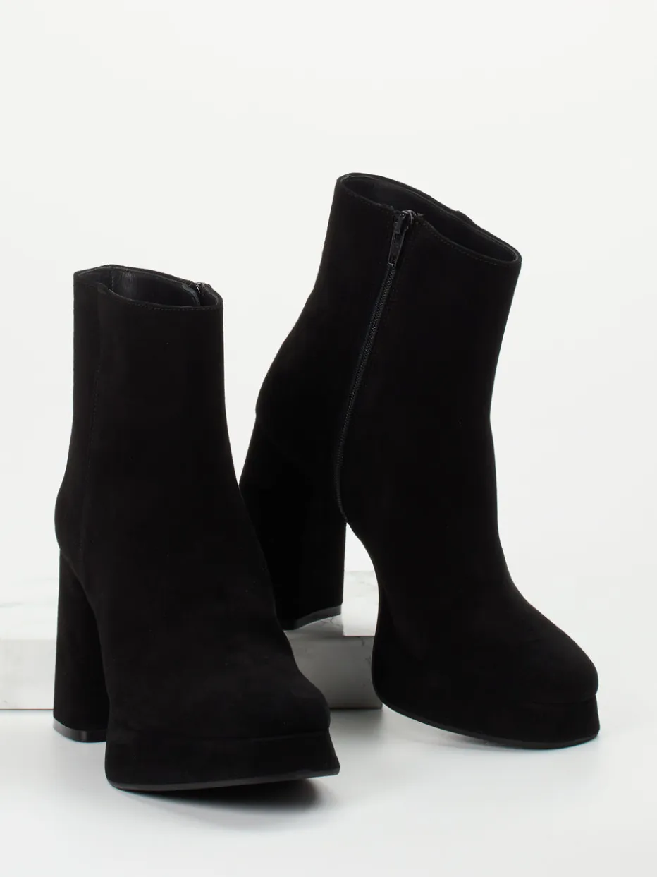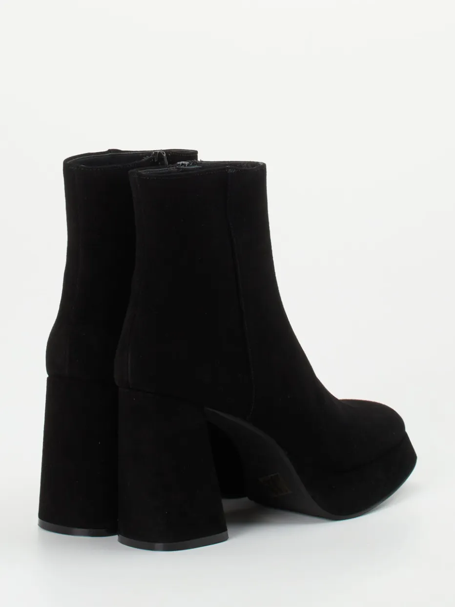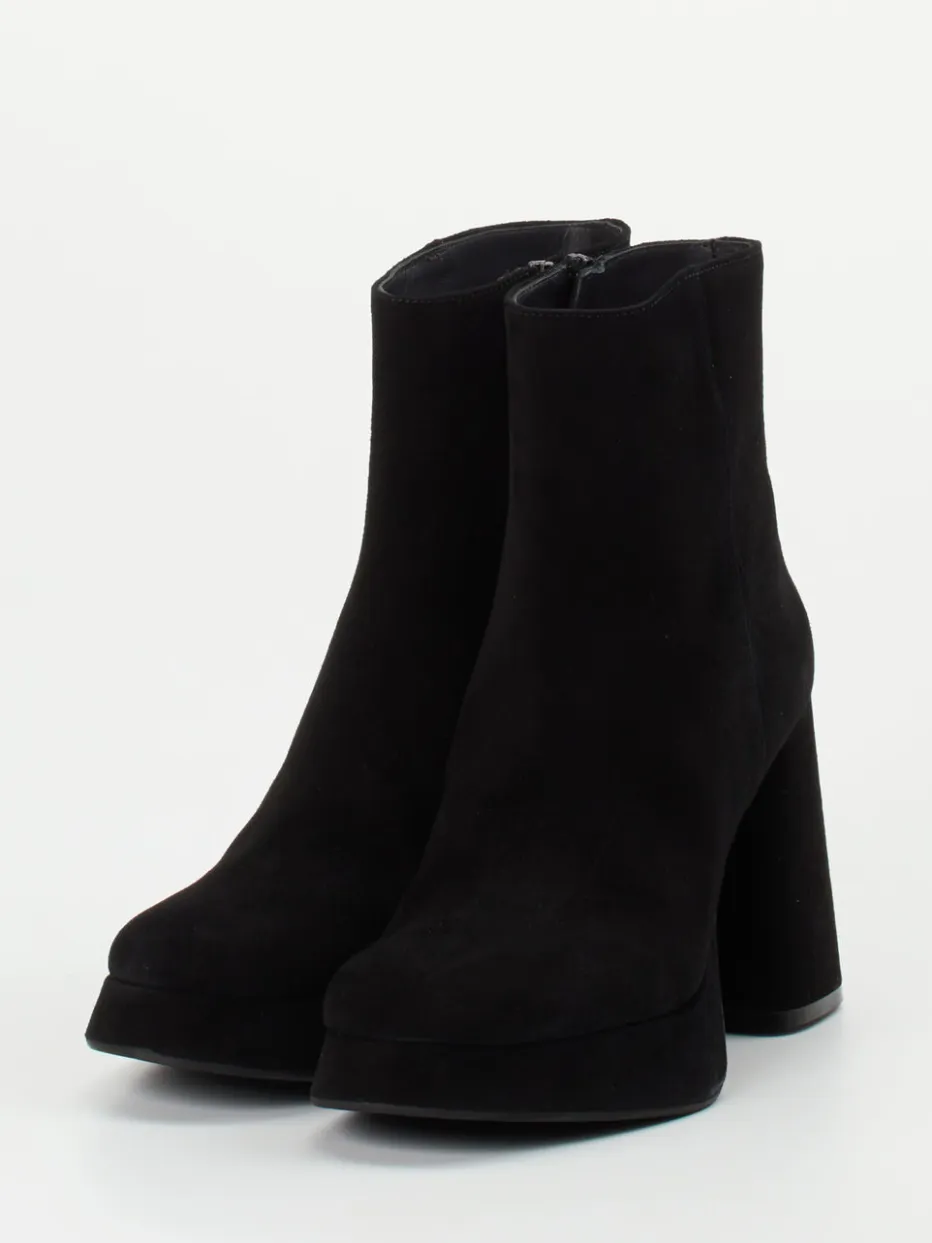 Ob im Büro oder beim Ausgehen – ihr schwarzes Veloursleder mit samtig-matter Oberfläche, kombiniert mit einer cleanen Silhouette und einem 9 cm hohen Blockabsatz, bringt Eleganz und Komfort in Einklang. Der seitliche Innenreißverschluss ermöglicht unkompliziertes Anziehen, während die verdeckten Ton-in-Ton-Nähte und die 2 cm hohe Plateausohle strukturgebende Akzente setzen. Der Look ist von 70s-Revivals und Modern Minimalism inspiriert – perfekt für trendbewusste Outfits mit Midikleidern oder Anzughosen.