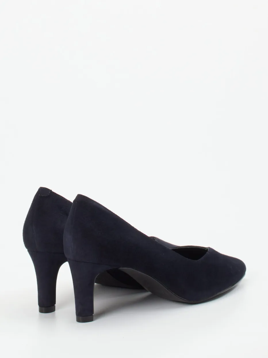 Stilvoller Auftritt mit Understatement.Maripé interpretiert klassische Damenpumps mit einer dunkelblauen Variante aus samtigem Veloursleder. Für elegante Momente im Arbeitsalltag oder bei formellen Anlässen bietet dieser Pump in Schlupfform mit spitzer Kappe und Kitten Heel eine elegante Lösung. Das Veloursleder zeigt sich samtig-matt, die taillierte Form unterstreicht die feminine Silhouette. Der dezente 6 cm hohe Absatz sorgt für komfortable Eleganz, während das Futter aus Kalbleder angenehmen Tragekomfort bietet. Dank des Ton-in-Ton-Designs und der glatten Sohle wirkt der Look ausgesprochen edel. Stilistisch passt das Modell ideal zu minimalistischen Business-Outfits oder zum klassischen Event-Ensemble. Ein vielseitiger Klassiker, der den Trend „Quiet Luxury“ dezent in Szene setzt.
