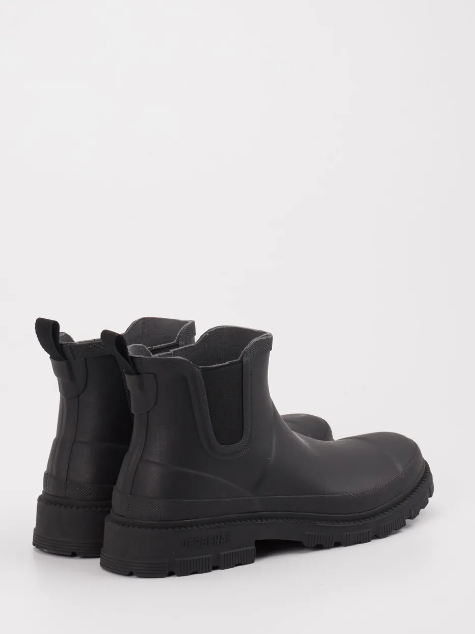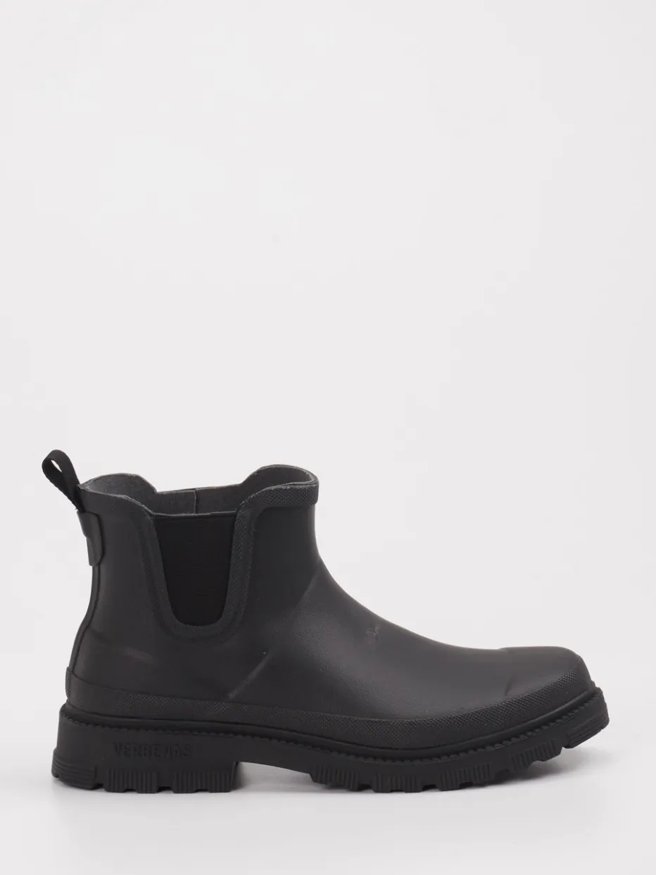 Regenfest durch Stilbewusstsein.Verbenas präsentiert eine unisex Regen-Chelsea-Stiefelette mit funktionalem Charakter. Für regnerische Pendelwege oder Spaziergänge in der Natur bietet dieses Modell zuverlässigen Schutz. Gefertigt aus wasserdichtem Gummi mit matter Oberfläche, ist es nicht nur pflegeleicht, sondern bringt auch eine klare Formsprache mit. Ton-in-Ton gehaltene Elastikeinsätze und eine praktische Zuglasche sorgen für Komfort beim Anziehen. Die profilierte Gummisohle bietet Trittsicherheit, während das Textilfutter innen für angenehmes Tragen sorgt. Inspiriert von Utilitywear und dem Gorpcore-Trend, passt dieser Schuh perfekt zu urbanen Regenjacken und funktionalen Looks. Wettertaugliches Design mit robustem Anspruch – typisch Verbenas.