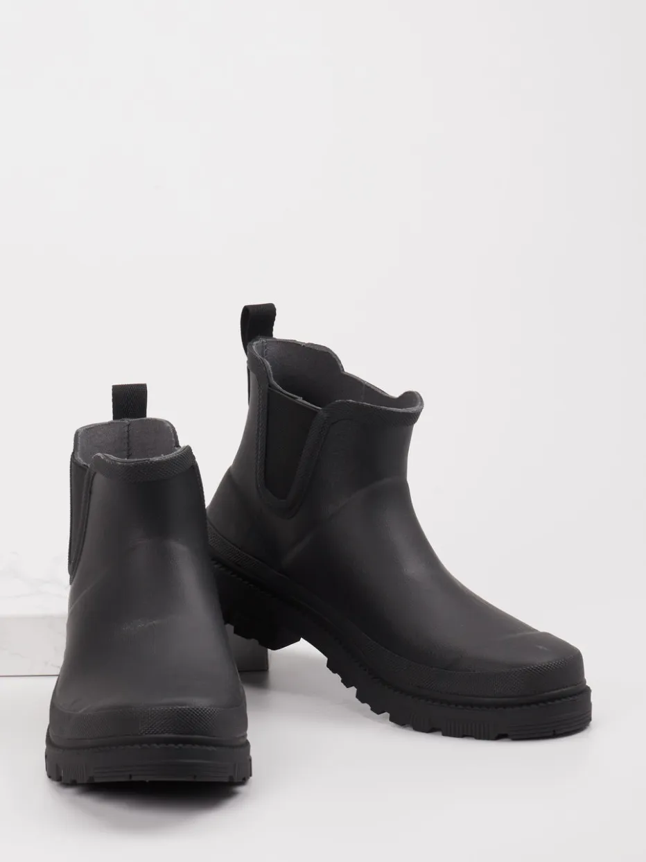 Minimalistisch gestaltete, wasserfeste Chelsea-Stiefelette mit griffiger Profilsohle – ideal für nasse Tage und urbanes Outdoor-Flair.