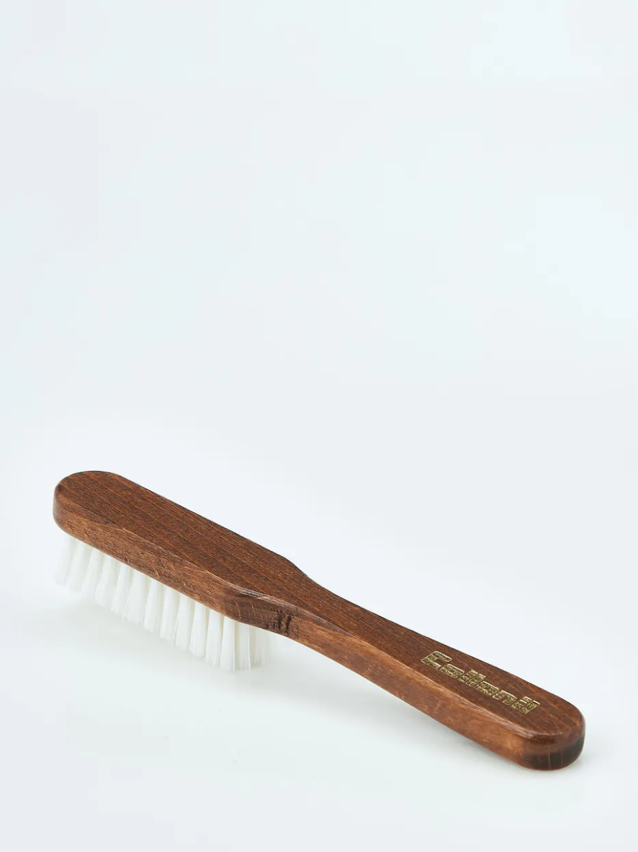 Hochwertige Verarbeitung trifft funktionales Design: Die Reinigungsbürste von Collonil überzeugt durch natürlichen Holzgriff und strapazierfähige Borsten für eine effektive Schuhpflege.
