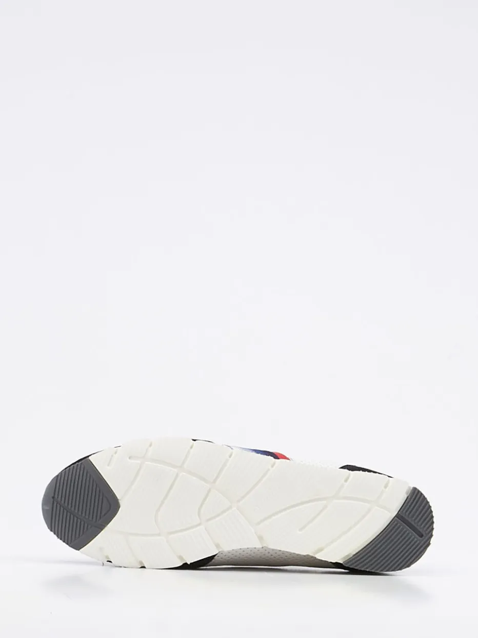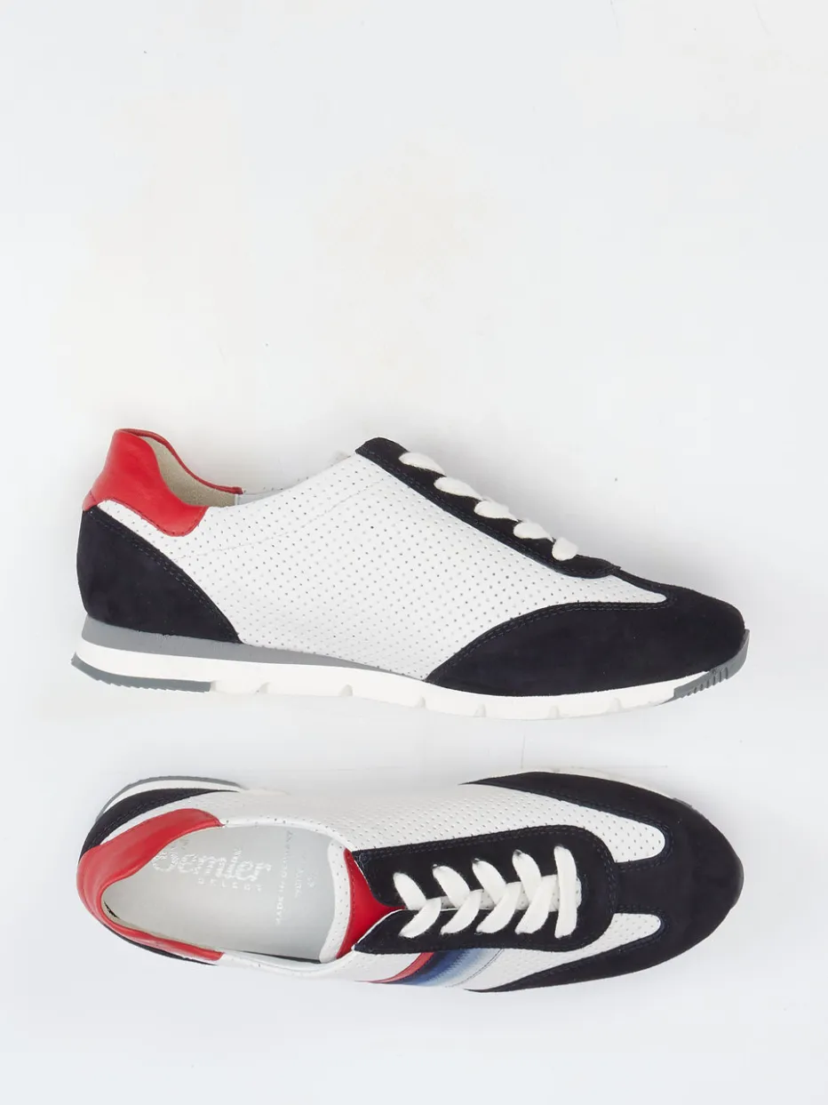 Alltag trifft Retro-Look.Der Damen-Sneaker von Semler verbindet Komfort mit modischer Aussagekraft. Für entspannte Aktivitäten im Alltag bietet das weiße, perforierte Kalbleder optimale Atmungsaktivität. Veloursleder-Einsätze und die rote Glattleder-Fersenkappe verleihen Struktur und visuelle Tiefe, ergänzt durch einen Seitenstreifen mit Farbverlauf in Blau-Rot. Durch die klassische, flache Silhouette mit mehrfarbiger Gummisohle trifft sportiver Stil auf Retro-Charme der 90er. Die Schnürung sorgt für individuellen Halt, während das lederbezogene Wechselfußbett zusätzlichen Komfort bietet. Ideal kombinierbar mit Jeans oder Nylonjacke. Semler steht hier für bequeme Passform und stilistische Vielfalt auf Schritt und Tritt.