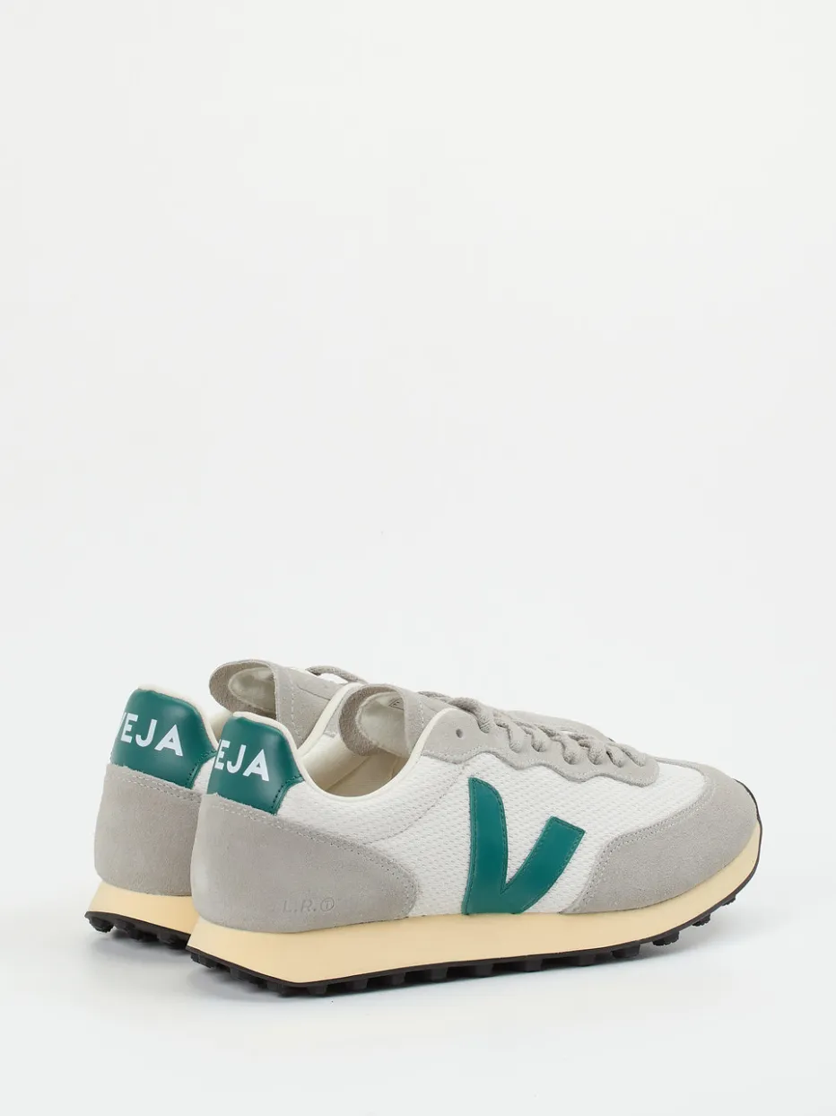 Retro-Vibes neu interpretiert.Der Sneaker von VEJA verleiht der Kategorie Retro Runner stilvolle Aktualität. Mit seinem mix aus weißem Meshtextil und samtig-matt strukturiertem Veloursleder überzeugt er durch atmungsaktive Leichtigkeit und visuelle Tiefe. Die tannengrünen Logo-Akzente setzen markante Highlights im minimalistischen Farbspektrum. Eine profilierte Gummisohle bietet sicheren Halt im Alltag, während das gepolsterte Fußbett angenehmen Tragekomfort verspricht. Inspiriert von den 90ern fügt sich das flache, schlanke Design nahtlos in nachhaltige Streetwear-Styles ein – passend zu Mom-Jeans oder Jogpants. VEJAs verantwortungsvolle Materialwahl unterstreicht die Verbindung aus Retro-Chic und Zukunftsbewusstsein.