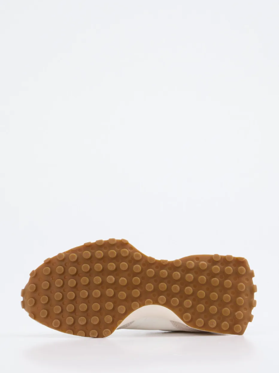 90s-Vibes für moderne Streetstyle-Looks.New Balance greift mit diesem Retro-Sneaker die Running-Ästhetik der 90er auf und verbindet sie mit aktuellen Designcodes. Die Kombination aus Mesh und samtig angeschliffenem Veloursleder sorgt für angenehme Atmungsaktivität und hohen Tragekomfort. Offwhite, Hellgrau und Beige formen ein harmonisches, zurückhaltendes Farbbild, das sich vielseitig kombinieren lässt. Die flache Silhouette mit profilierter Gummisohle greift den Retro-Running-Stil auf, während Details wie die tonalen Nähte und das seitliche Markenlogo für charakteristische Markenattitüde stehen. Ideal für sportlich-lässige Streetwear-Stylings – von Jogpants bis Jeans. Design mit funktionalem Anspruch – in vertraut hochwertiger New Balance Qualität.